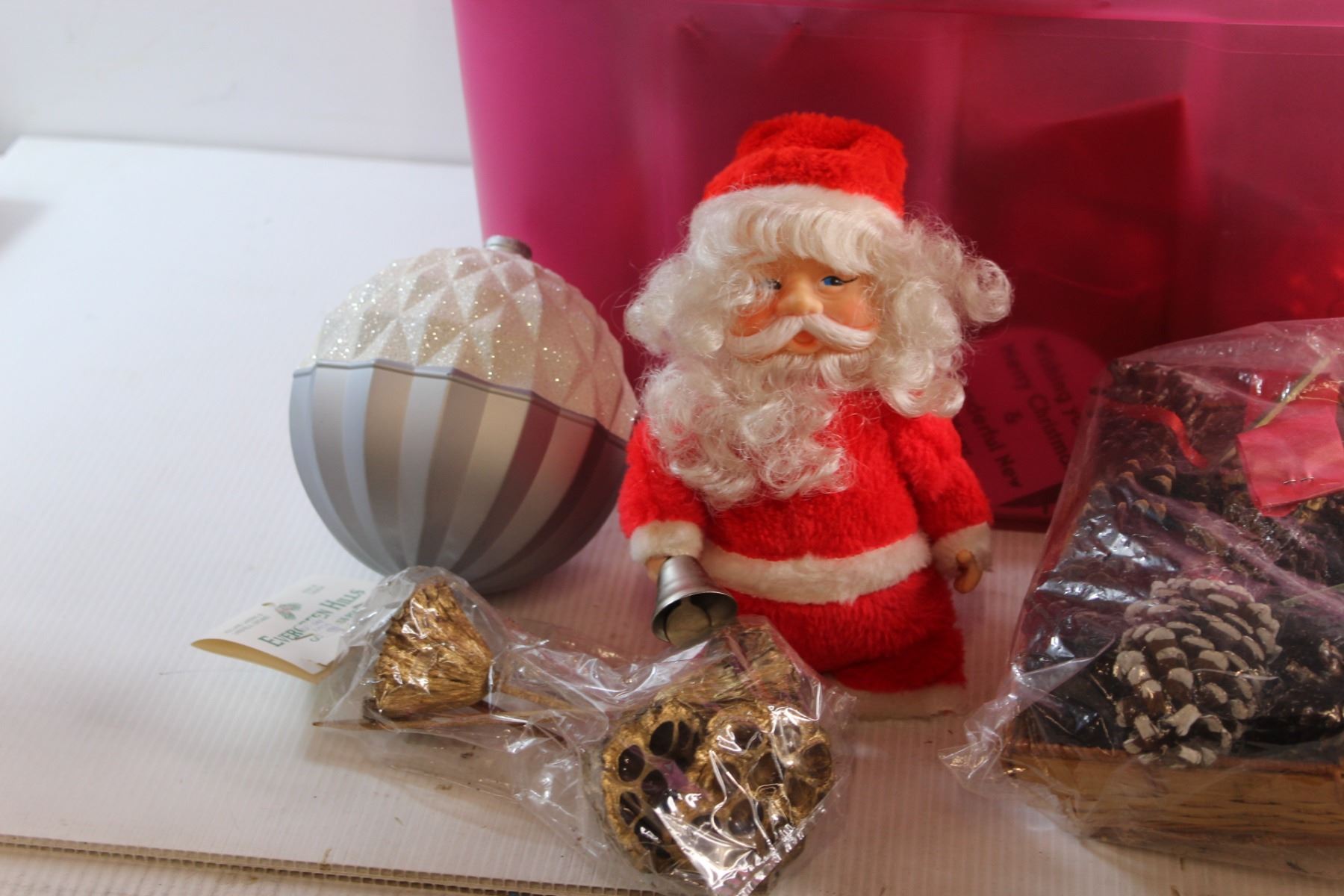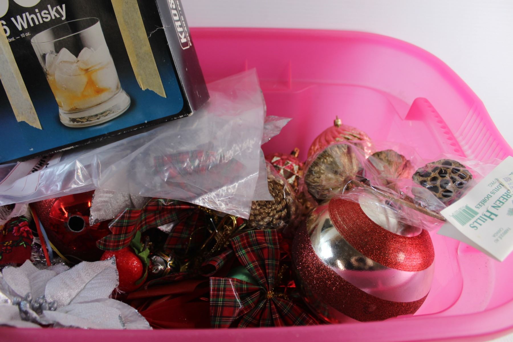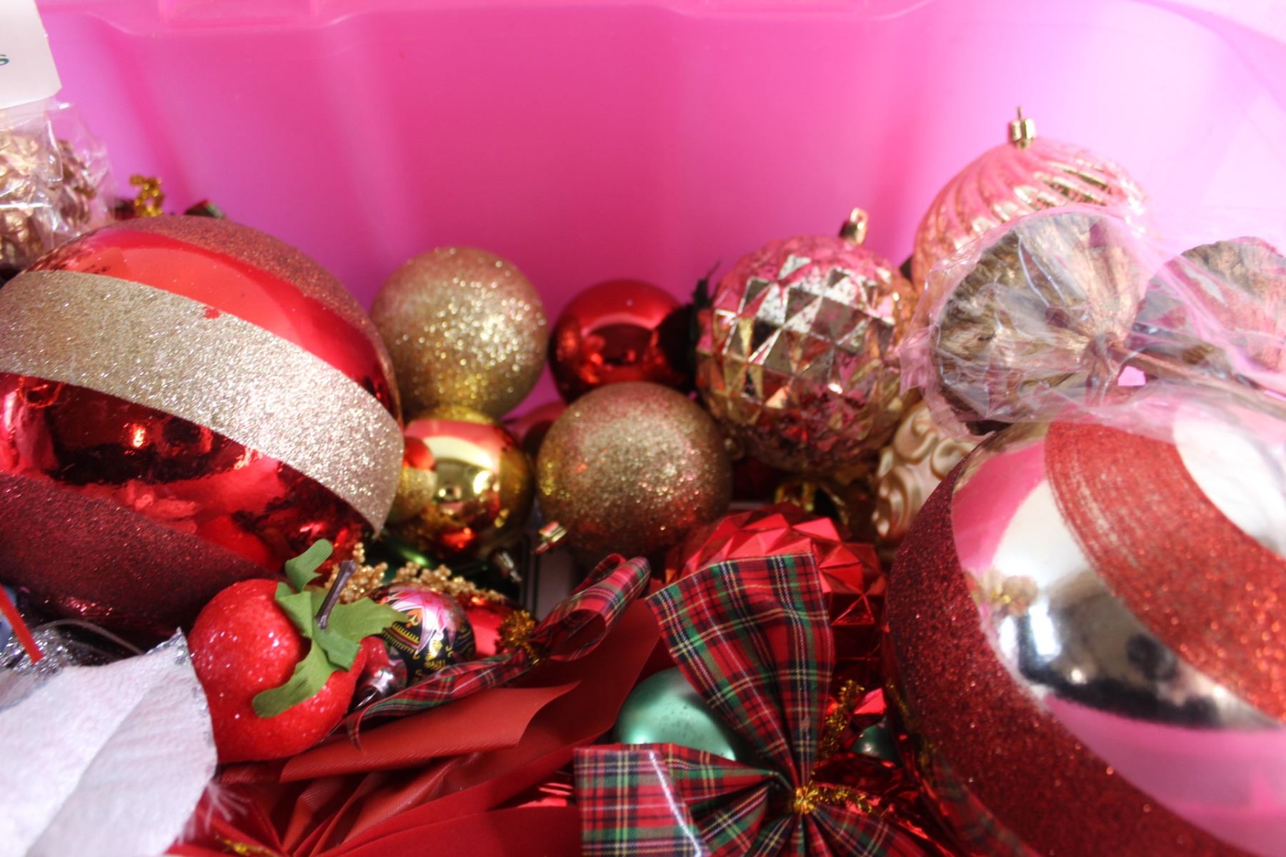 * Plastic Tote and Assorted Christmas Ornaments