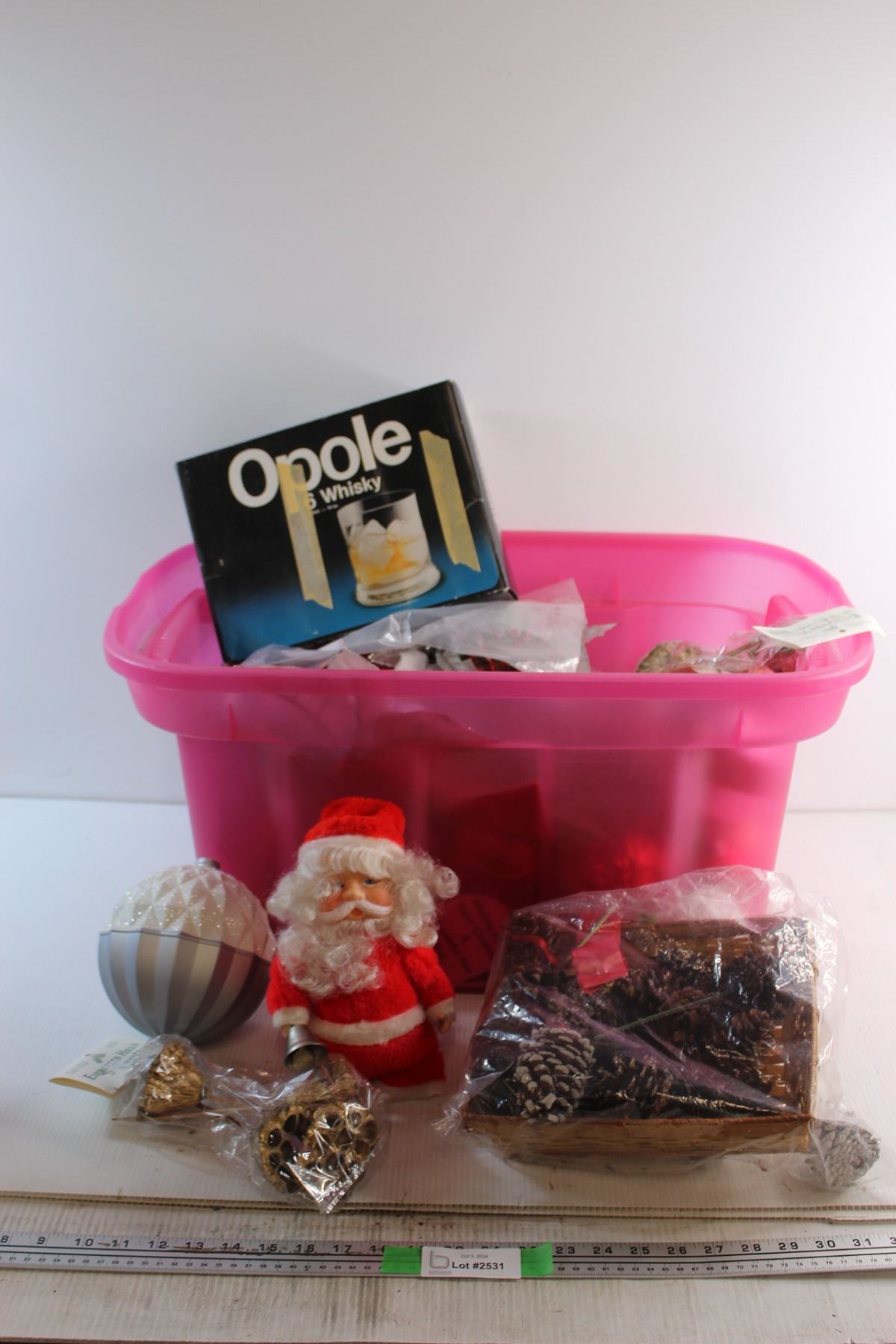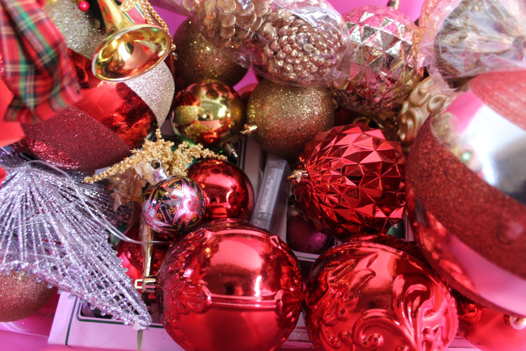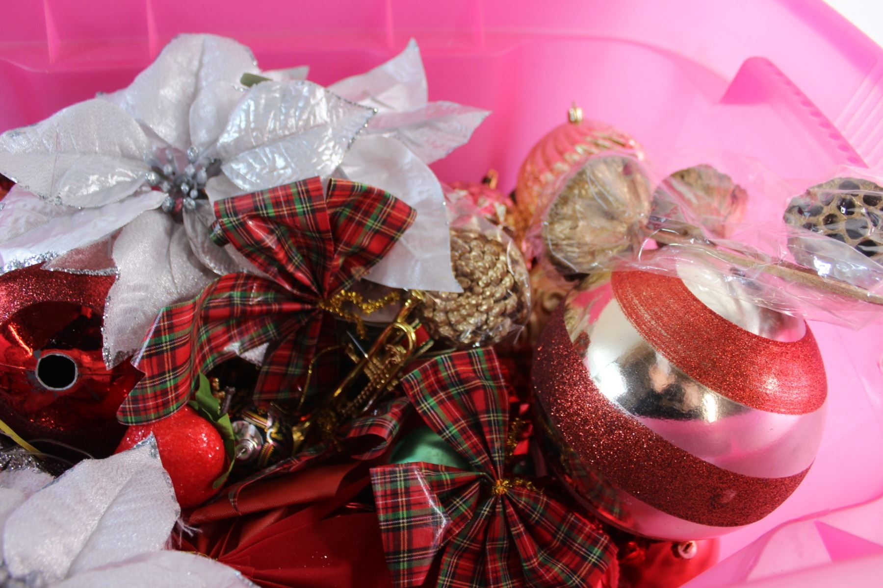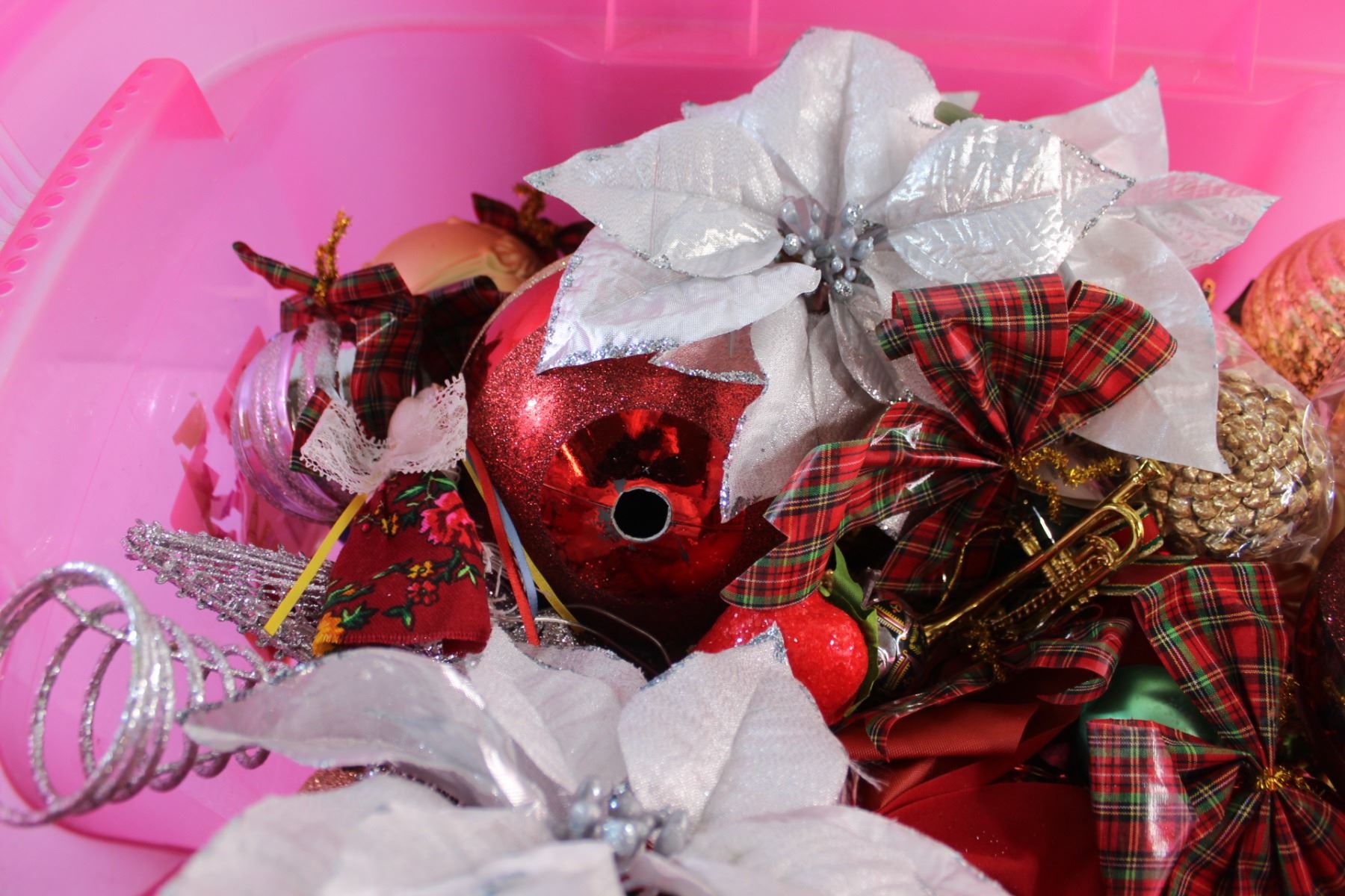 * Plastic Tote and Assorted Christmas Ornaments