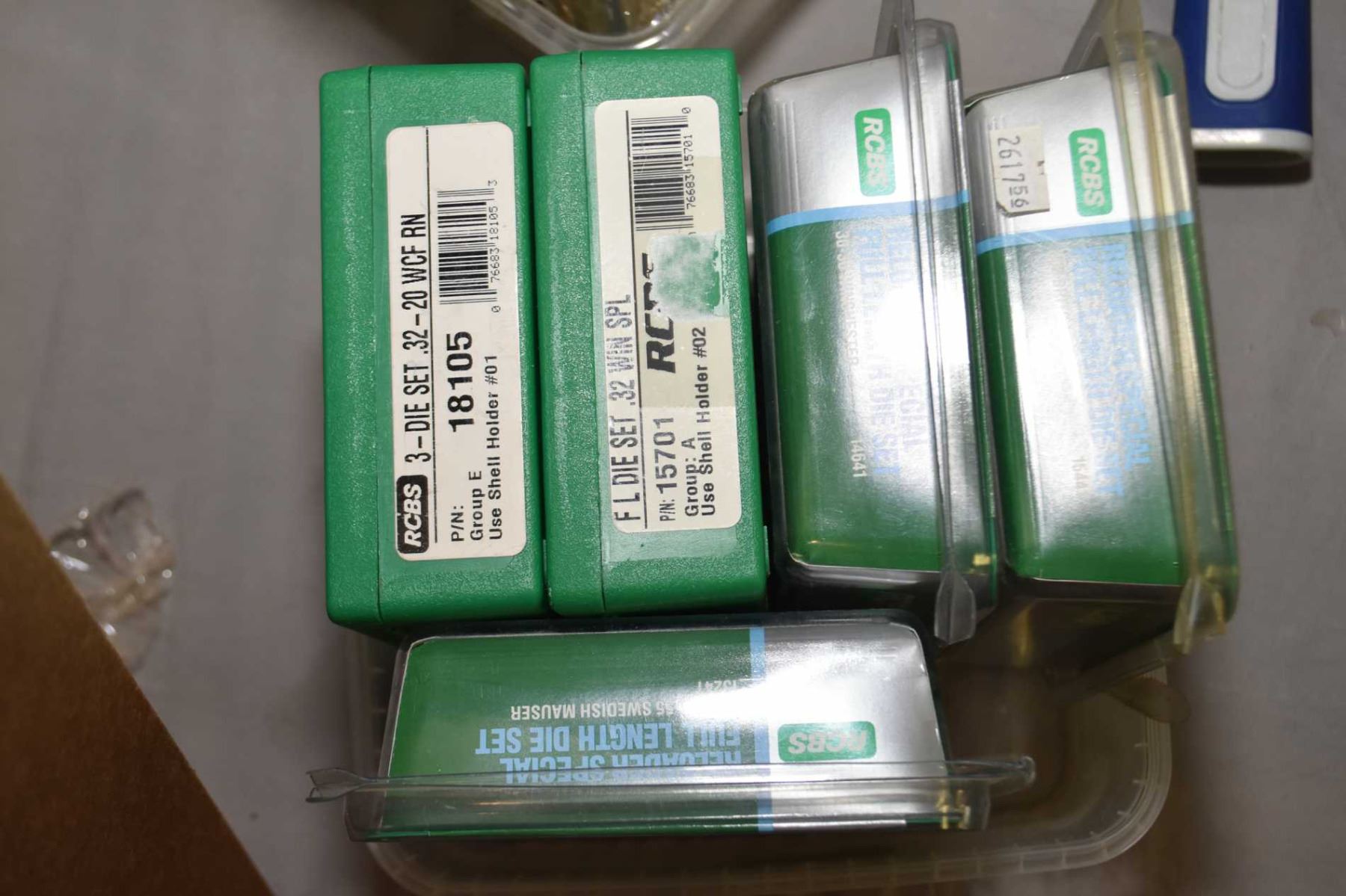 Plastic Tray : Five RCBS Die Sets : 6.5 x 55 Swedish Mauser 2 Die Set - .303 Brit 2 Die - .30 - 30 Win 2 Die - .32 Win Spec 2 Die - .32 - 20 3 Die