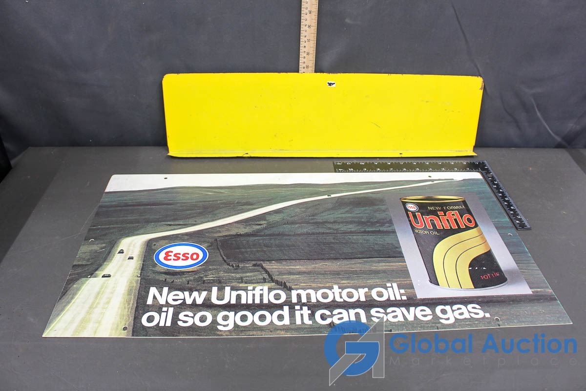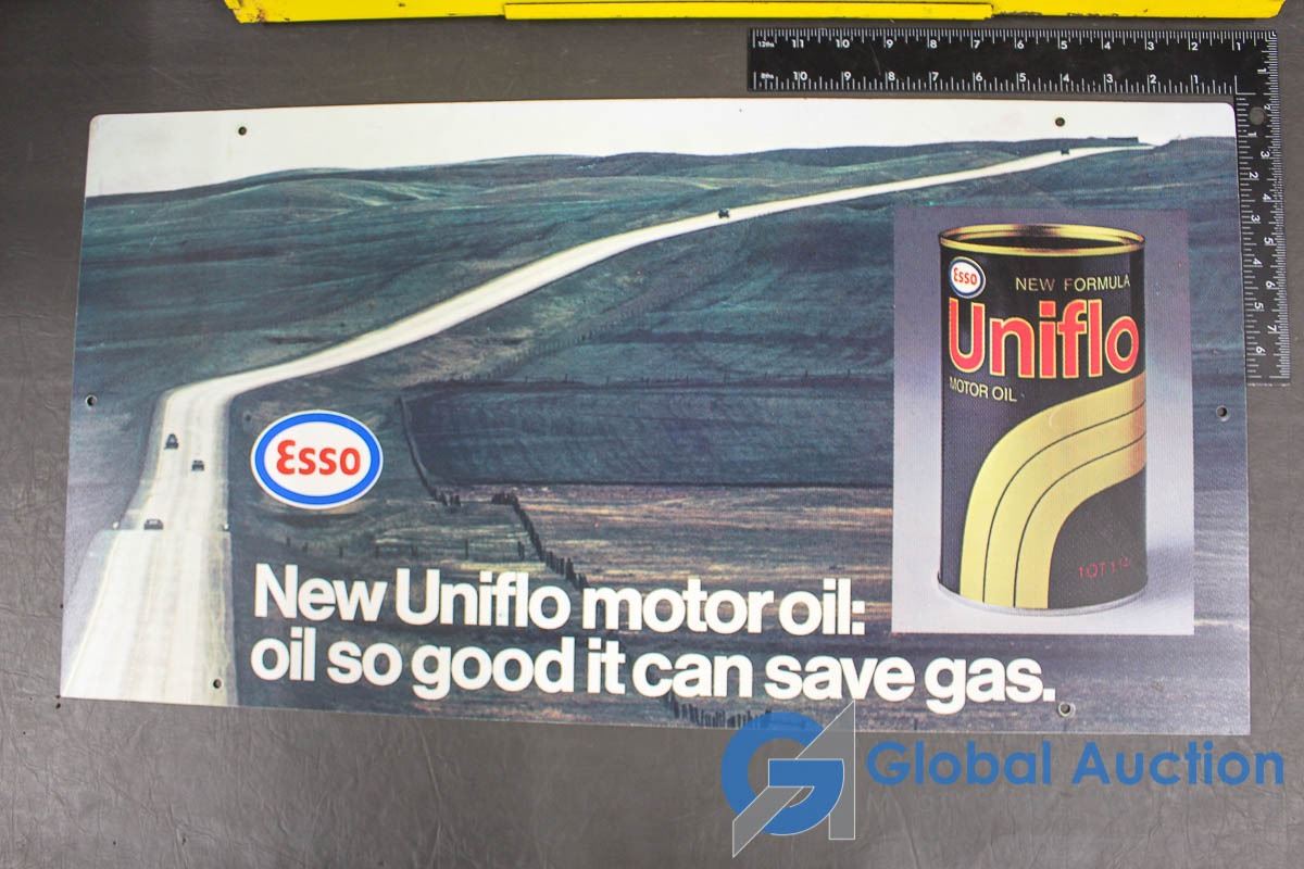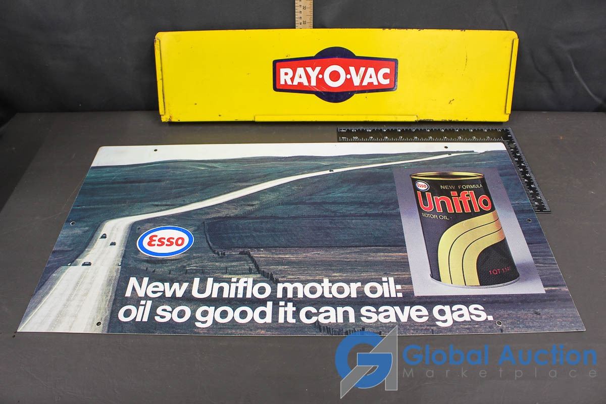 Plastic Uniflo/Esso Sign & Ray-O-Vac Metal Sign