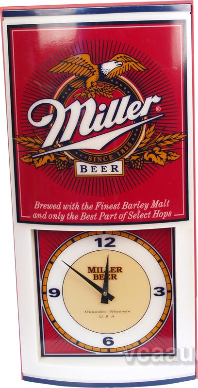 Plastic Wall Mount Miller Beer Light-Up Sign & Clock, - 12" x 24"