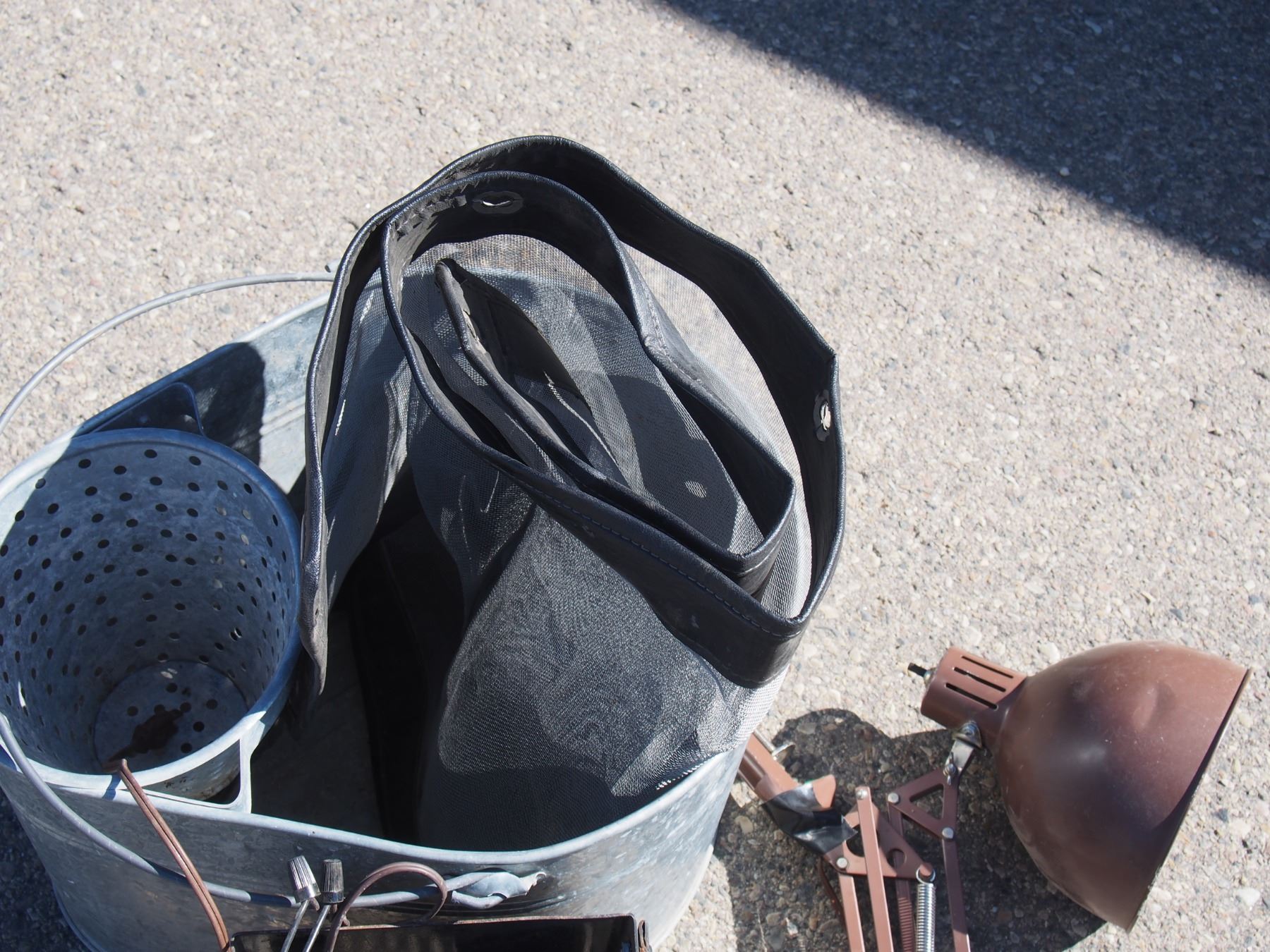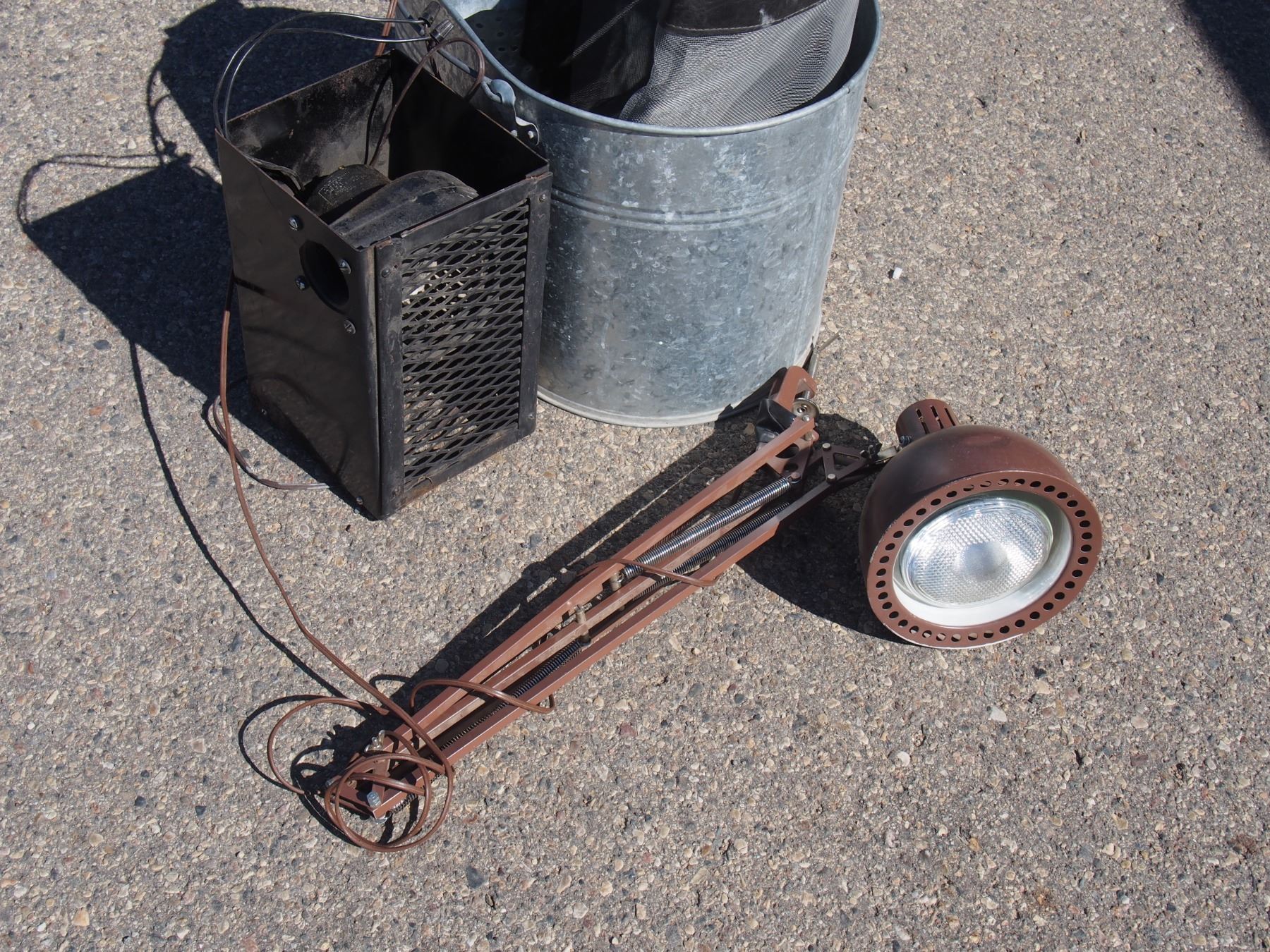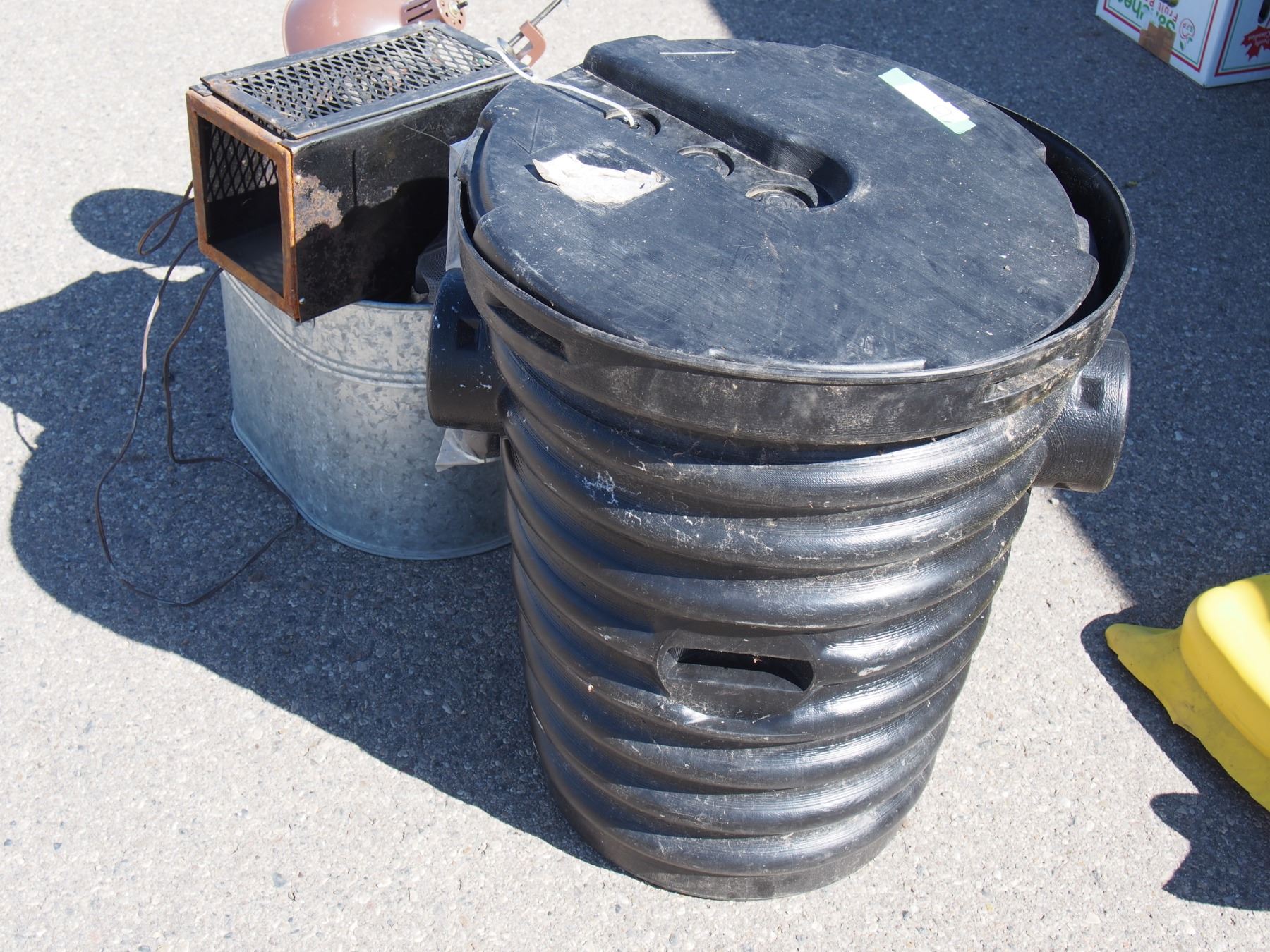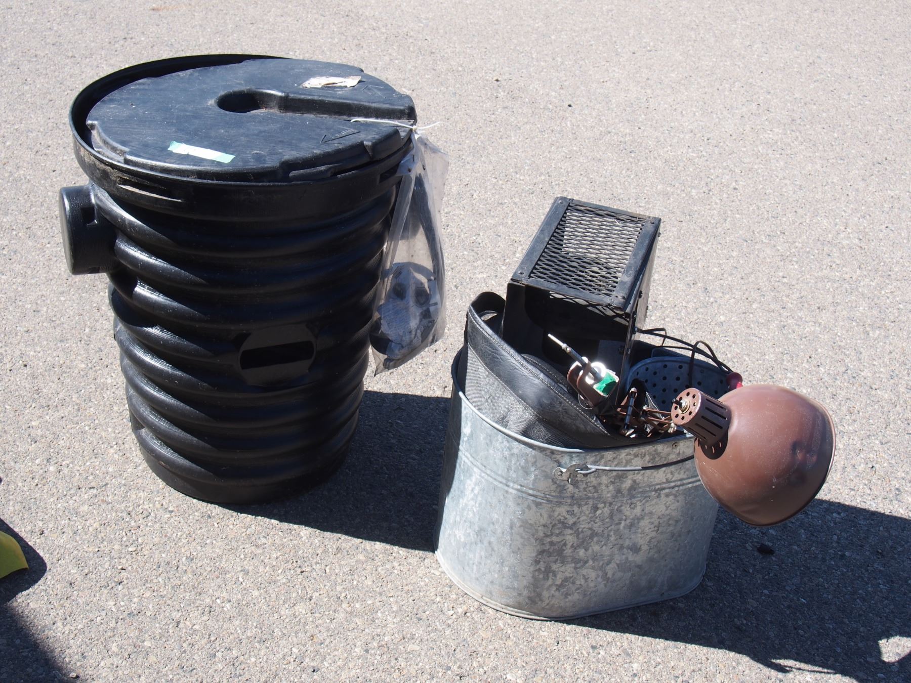 Plastic Water Pump out Tub (23.5"T), Lights, Mop Pails, and Misc.