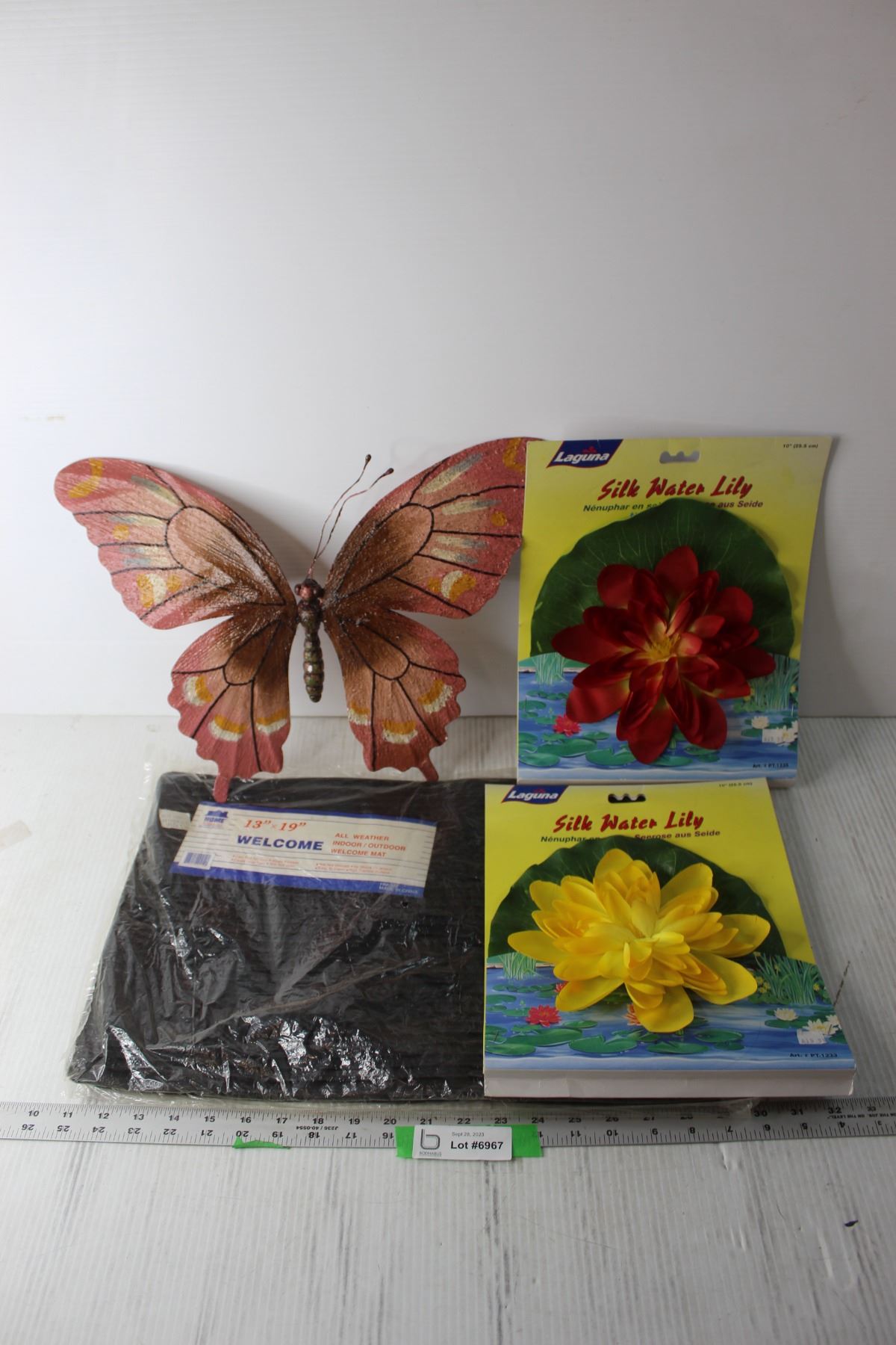 Plastic Welcome Matt, Butterfly and Flower Decorations