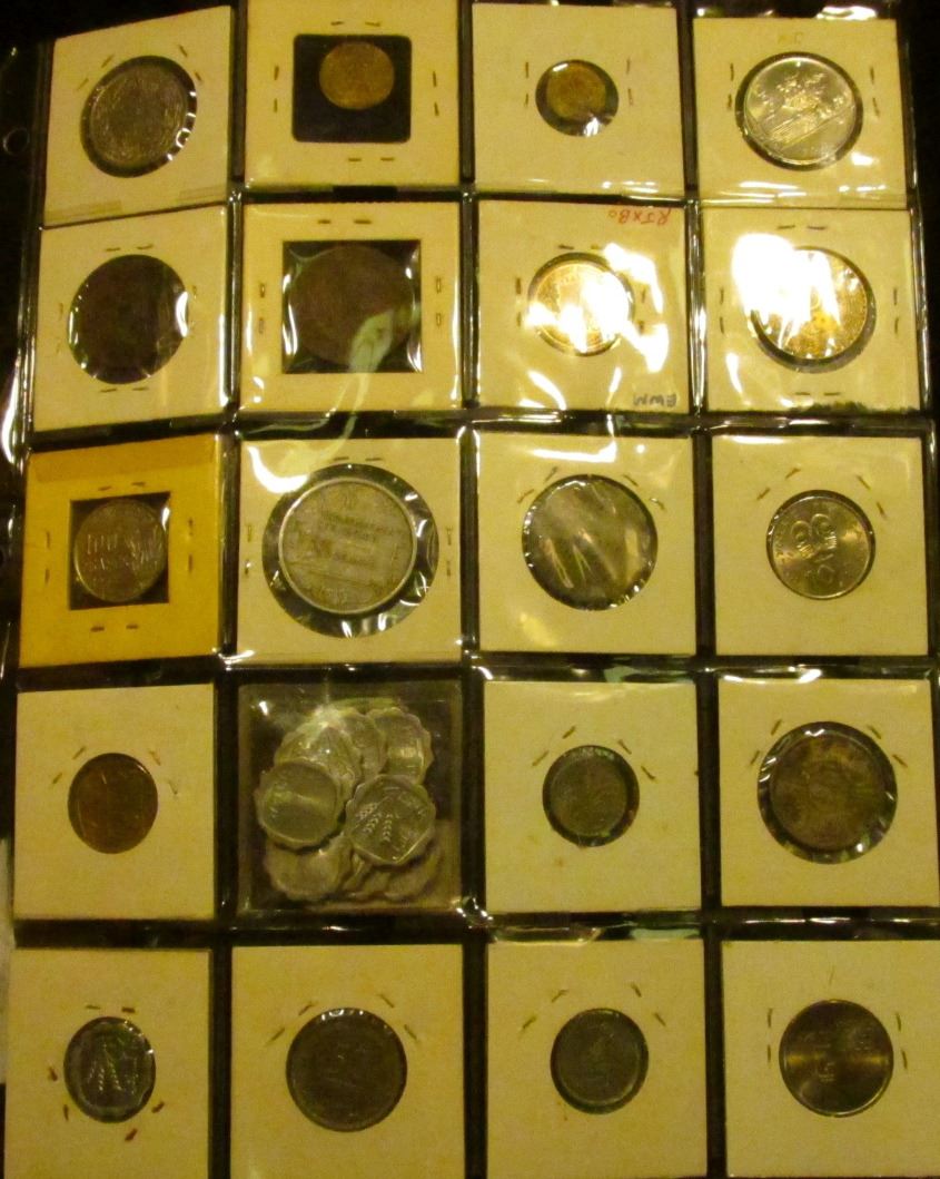 Plastic page with (14) various denomination Israel Coins, most of which are high grade; 1940 Indo Ch