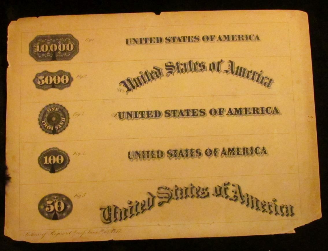 Plate 17 "Sections of Registered 5/20 of June 30/64" Heading $10,000, $5,000, "One Thousand" $100, $