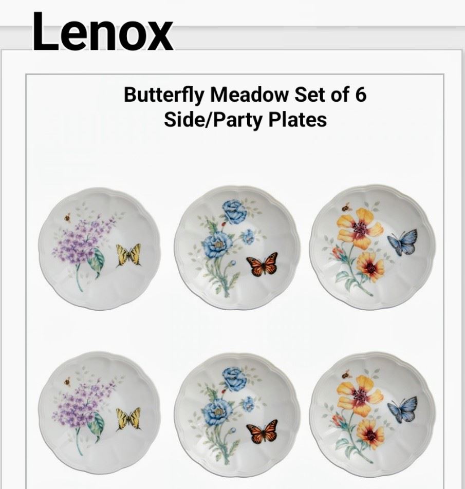 Porcelain side plates with elegant butterfly and floral designs, set of six, dishwasher safe, new.