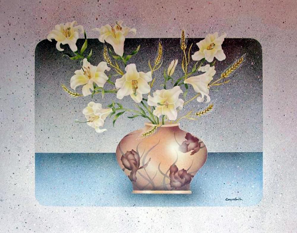 Plate Signed Coopersmith Floral In Vase | Unframed Size: 25X30 | Offered Unframed . Framing presentation if shown is for concept only. If you need assistance with custom framing, call the experts at ArtForSale