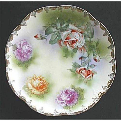 Wheelock Austria Collectors Plate. Gorgeous rose plate with gilt design edging for your collection. The beautiful vivid orange and pink roses are set in a lime green and green background. This plate is very old. Probably around 1900s or earlier. It is marked with Wheelock key lock stamp with Austria.