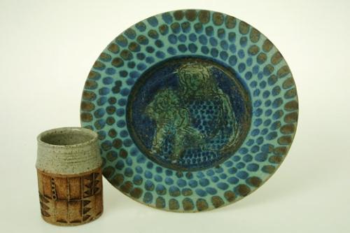Plate + vase, Lisa Larson, Gustavsberg, diam. 30