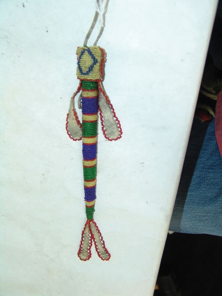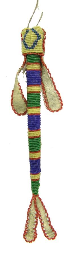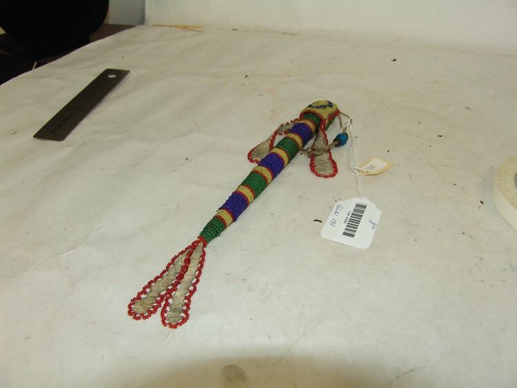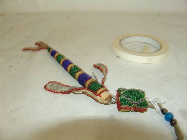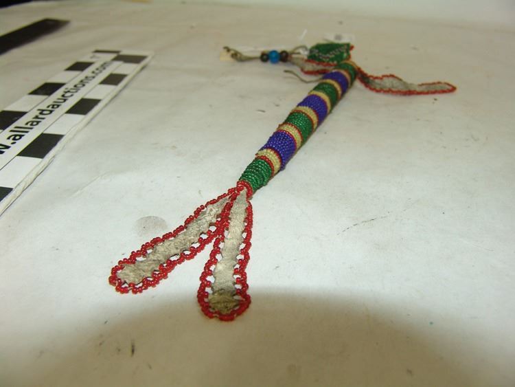 Classic wrap beaded shaped rawhide case with pull-on cap and side tabs. Very good condition. Few missing beads.,Early 1900s,8" (BDWK)