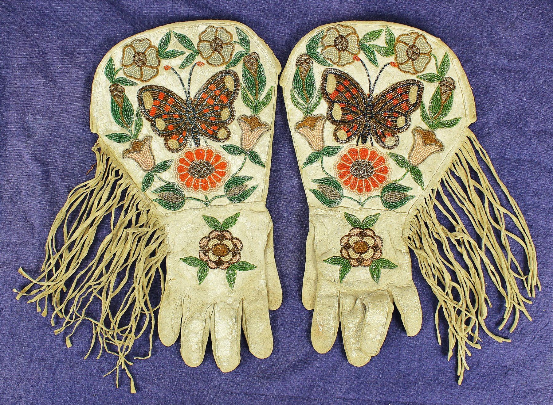 Large eye dazzling gauntlets with beautiful cut glass beads and fringed.