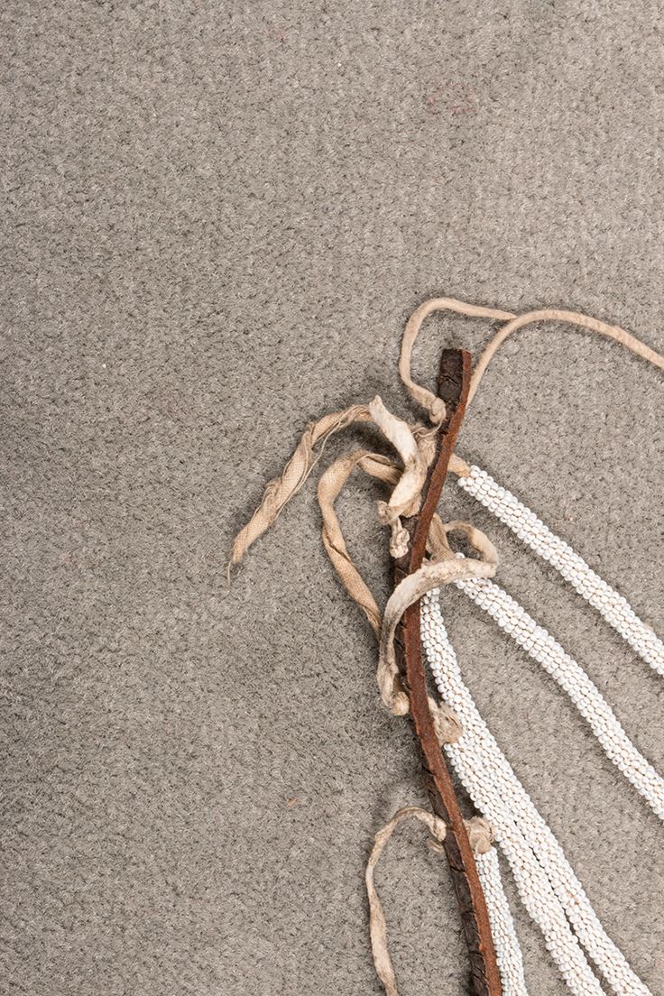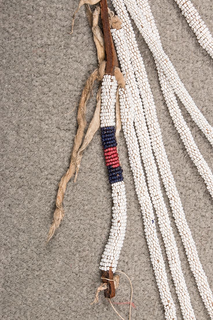 Plateau Beaded Loop Necklace. 24" long, fully beaded with white, dark blue, and translucent red beads. 19th century.