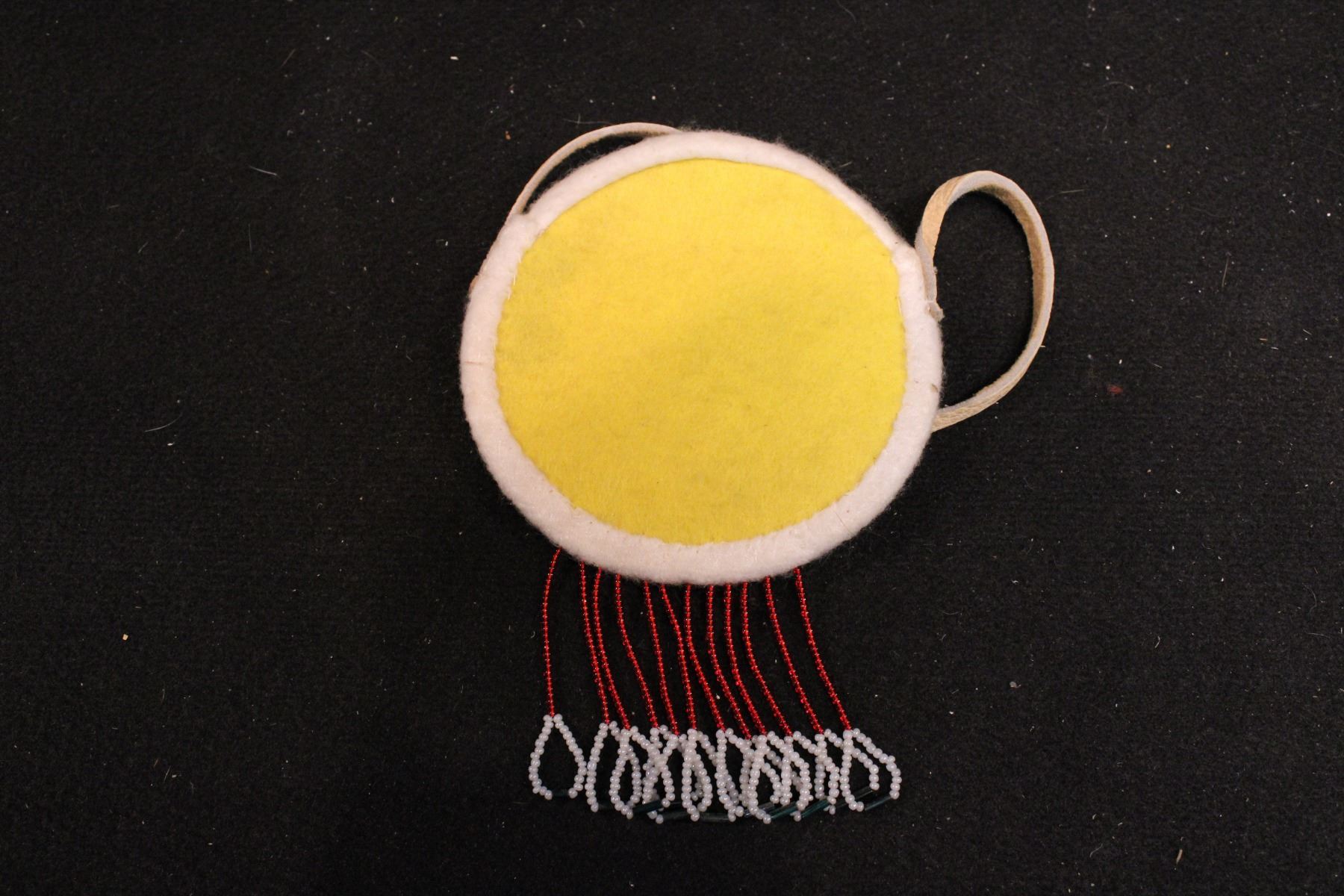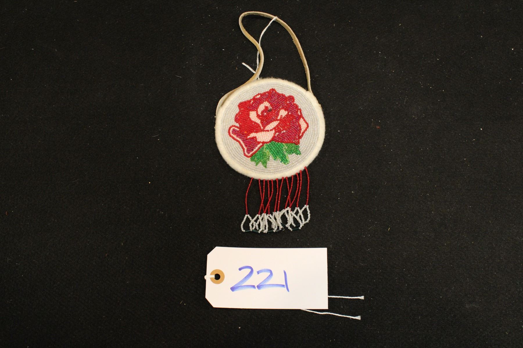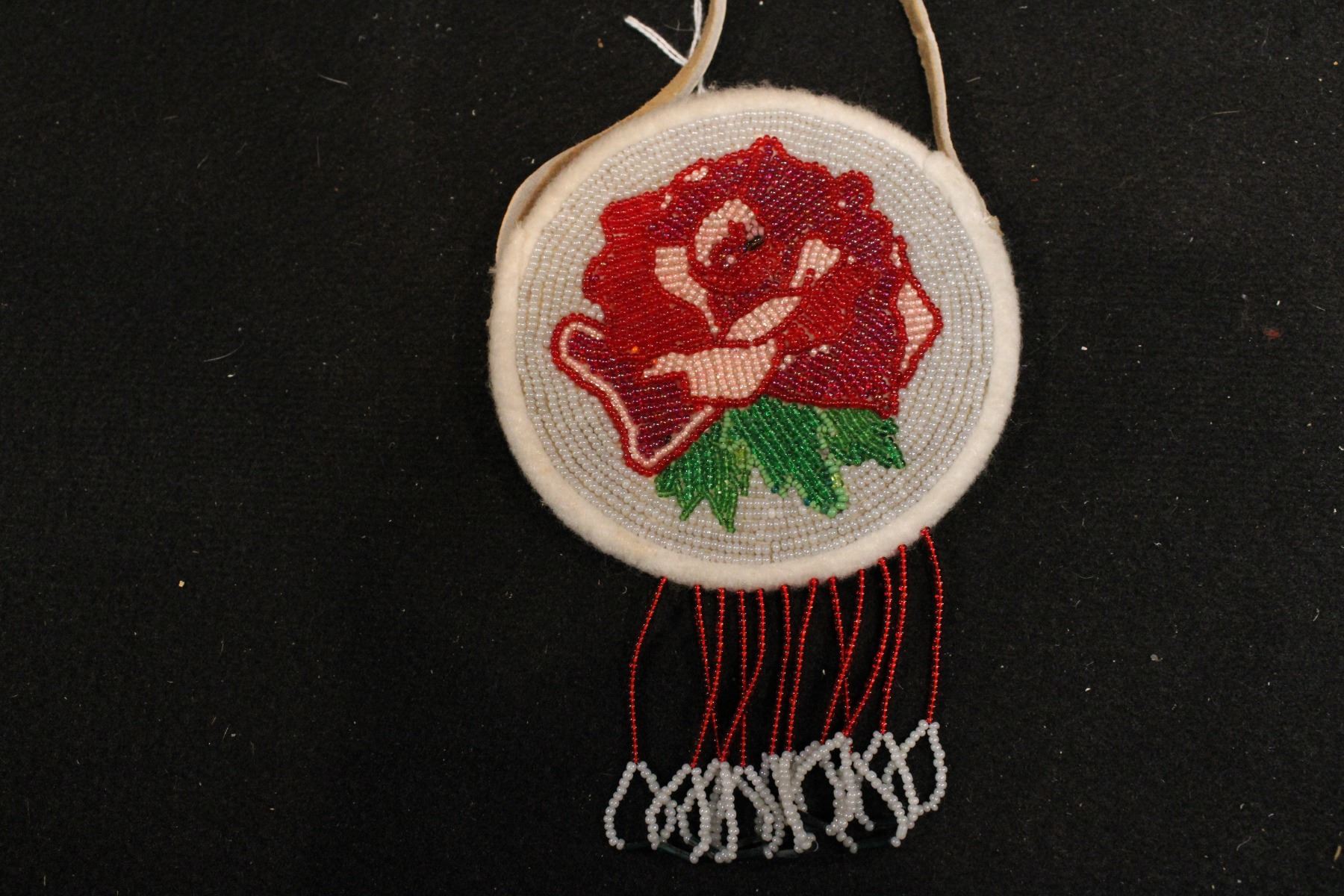 Circular pouch. Rose on white background. Felt backing. 4.5" diameter.