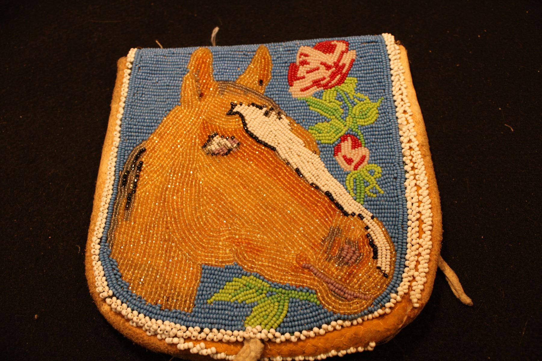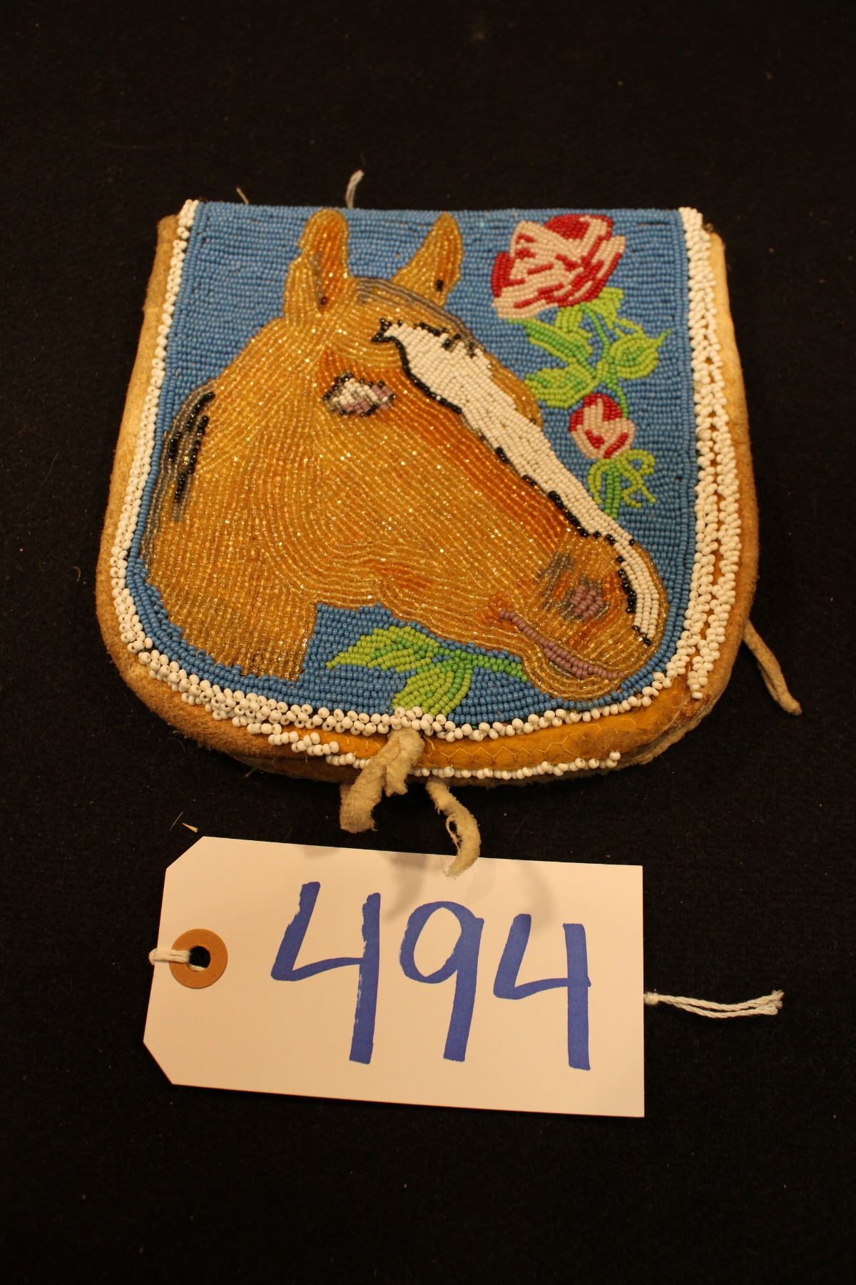 Horsehead w/ flowers on blue background. Damage. 7.25 x 7.5