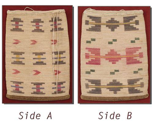 Plateau Cornhusk Bag. 19 ½” x 14 ¾”. Leather rim. Different designs on both sides. Excellent condition. (est $1,000-1,500)