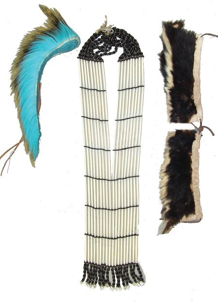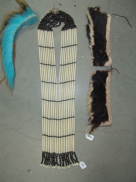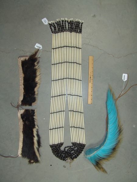 Mid/Late 1900s, Includes a great hairpipe bone necklace, a vintage porcupine dance roach, and skunk leggings. All in good condition. Necklace 38" x 77"