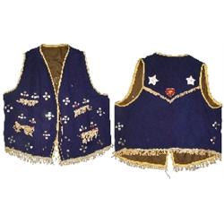 Plateau Indian-Nez Perce men's wool vest w/deerskin fringe, decorated w/seed & cut beads & sequins o