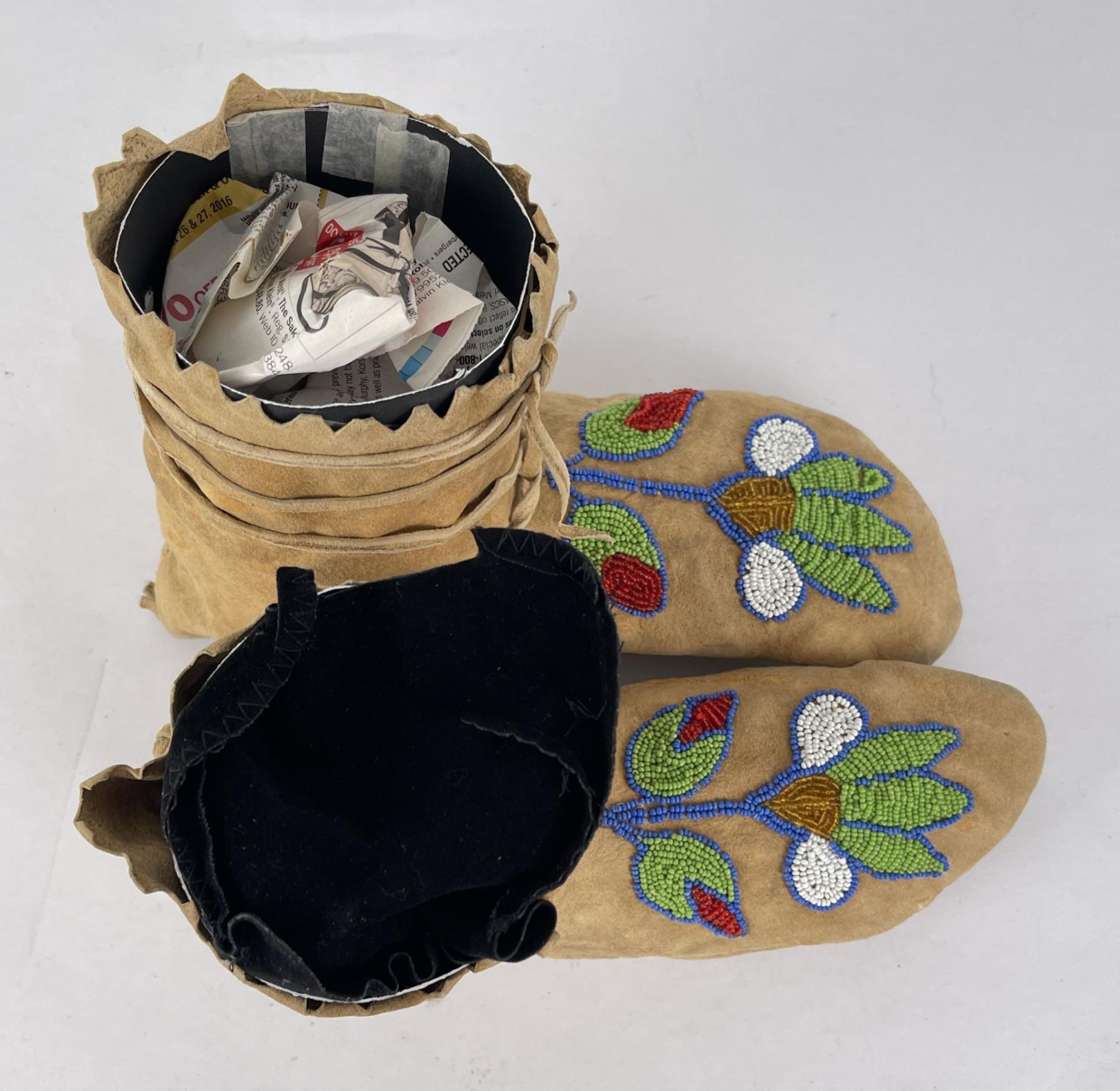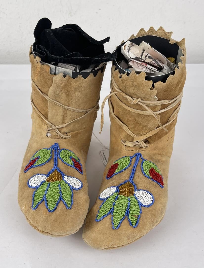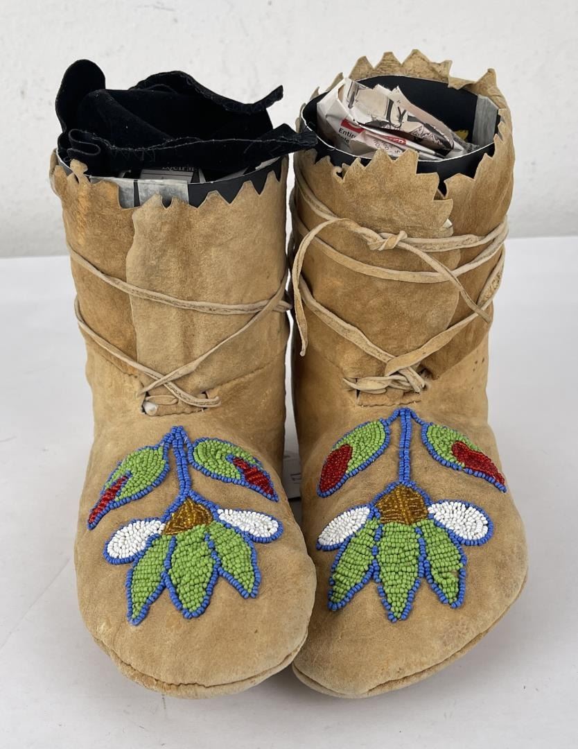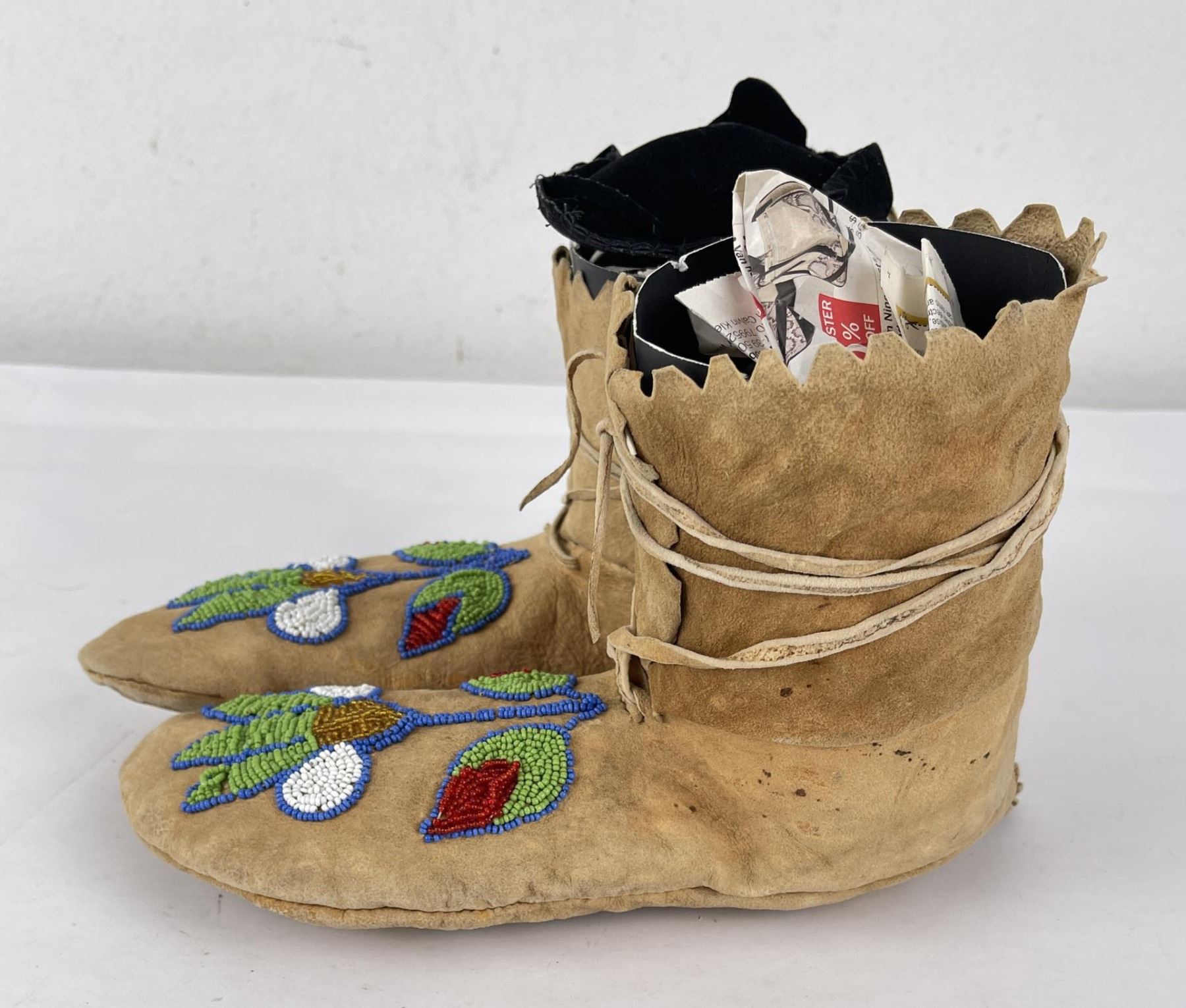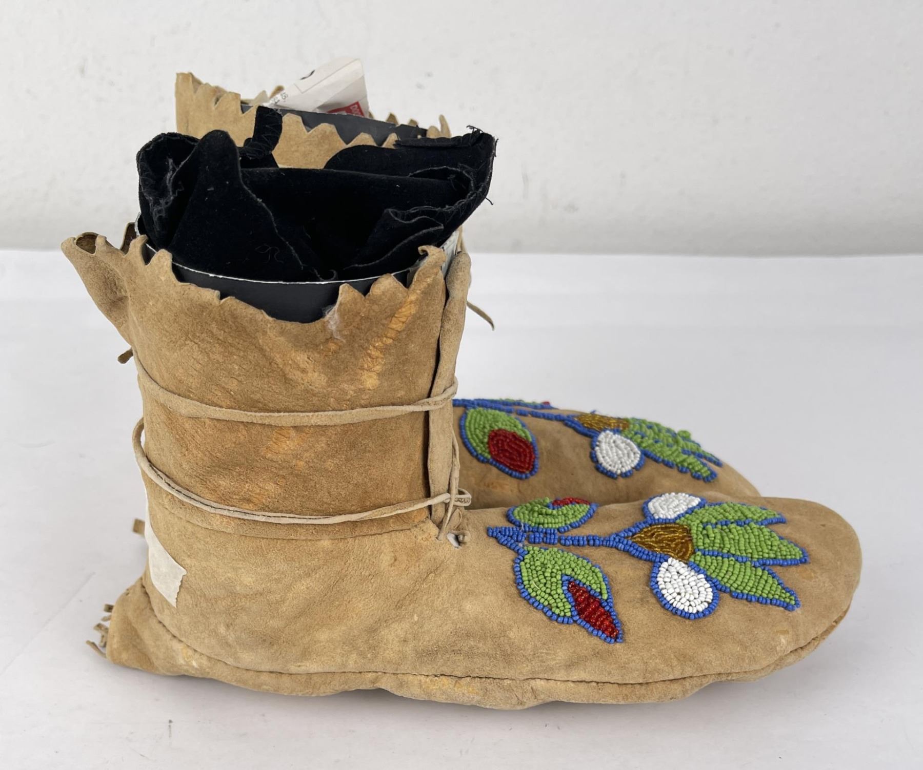 Nice pair of high top moccasins. Second half of the 20th Century. 10 1/2" long. Allard Auction Collection Inv: CAN 45519