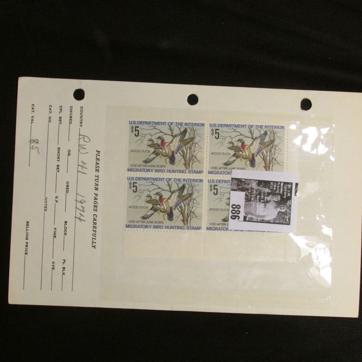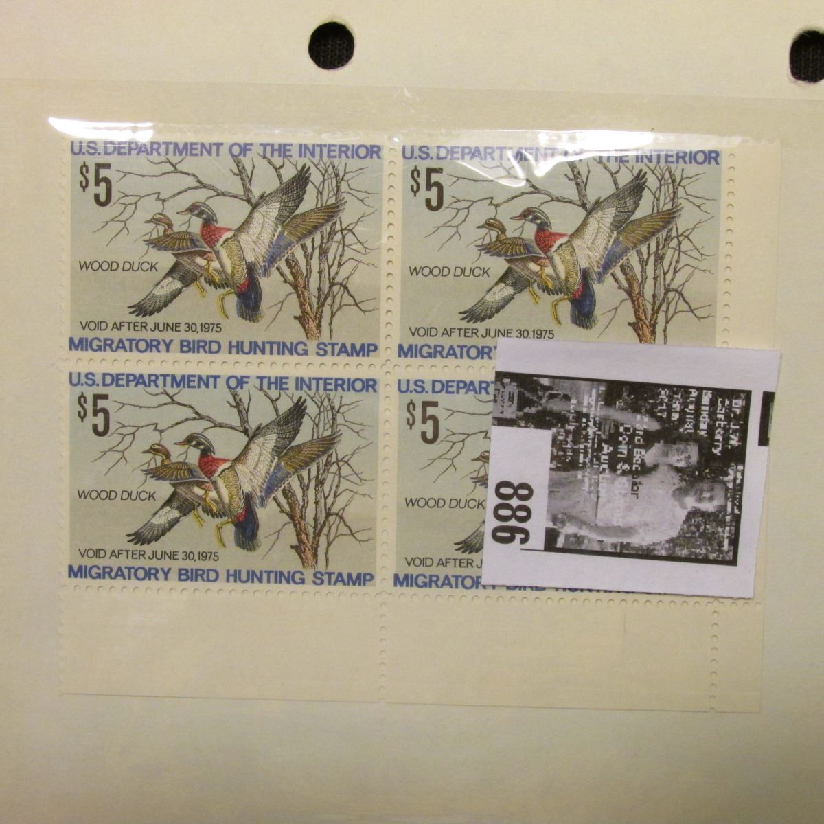 Plateblock RW 41 1974 Federal Migratory Bird Hunting and Conservation Stamps, 4 Stamps, never hinged, unsigned, Mint condition.
