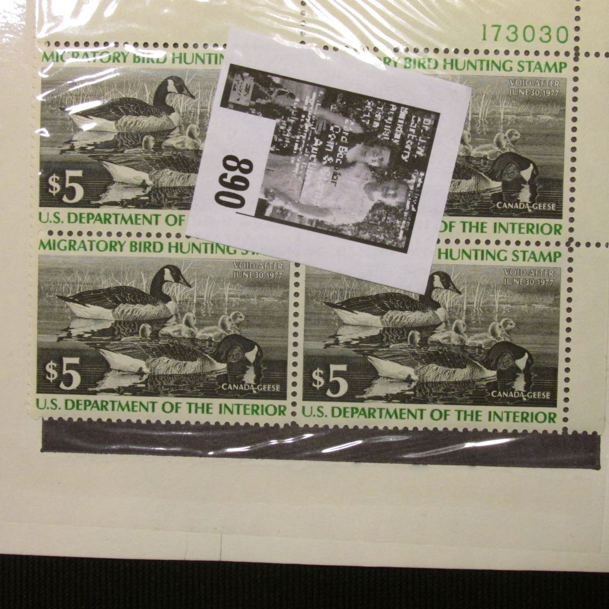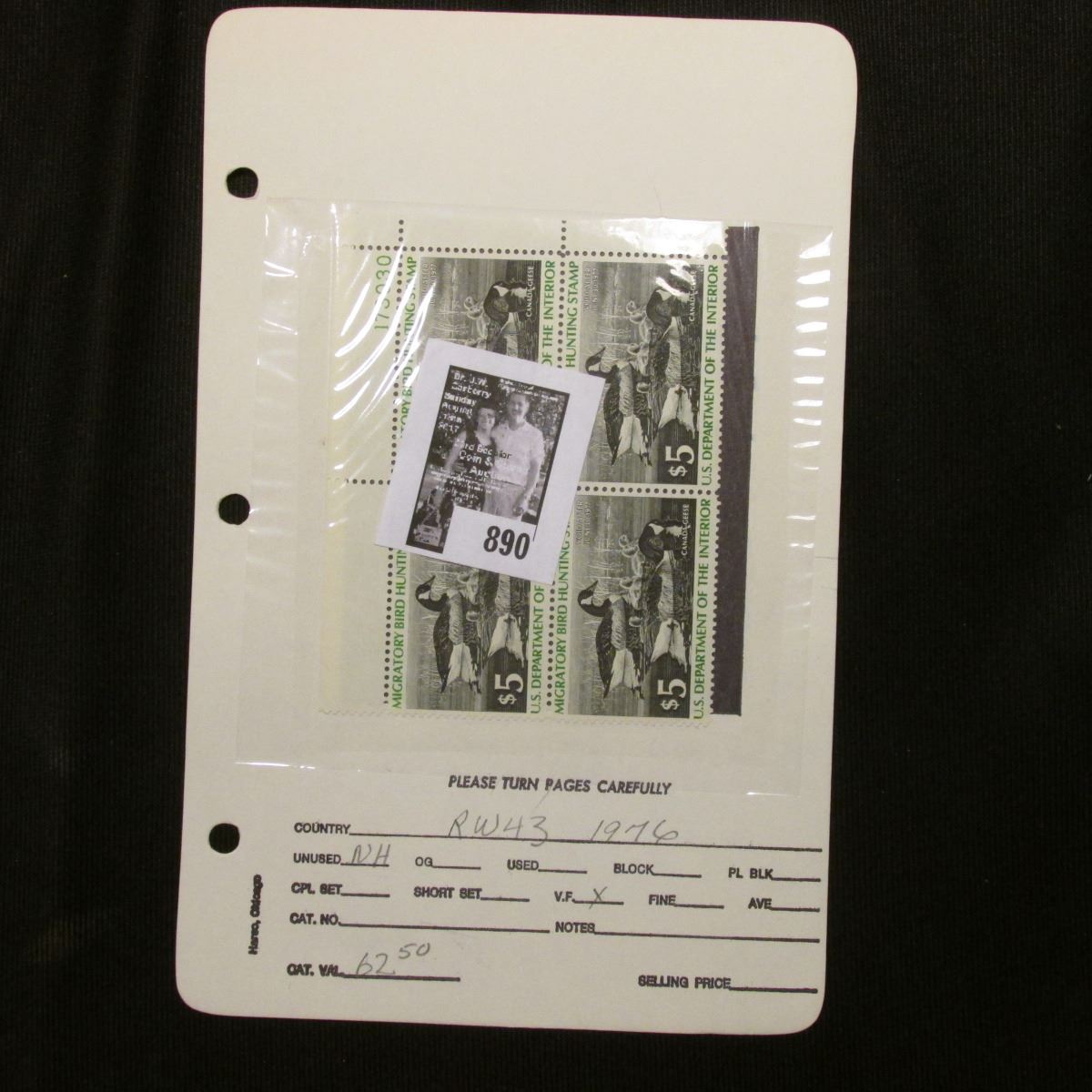 Plateblock RW 43 1976 Federal Migratory Bird Hunting and Conservation Stamps, 4 Stamps, never hinged, unsigned, Mint condition.