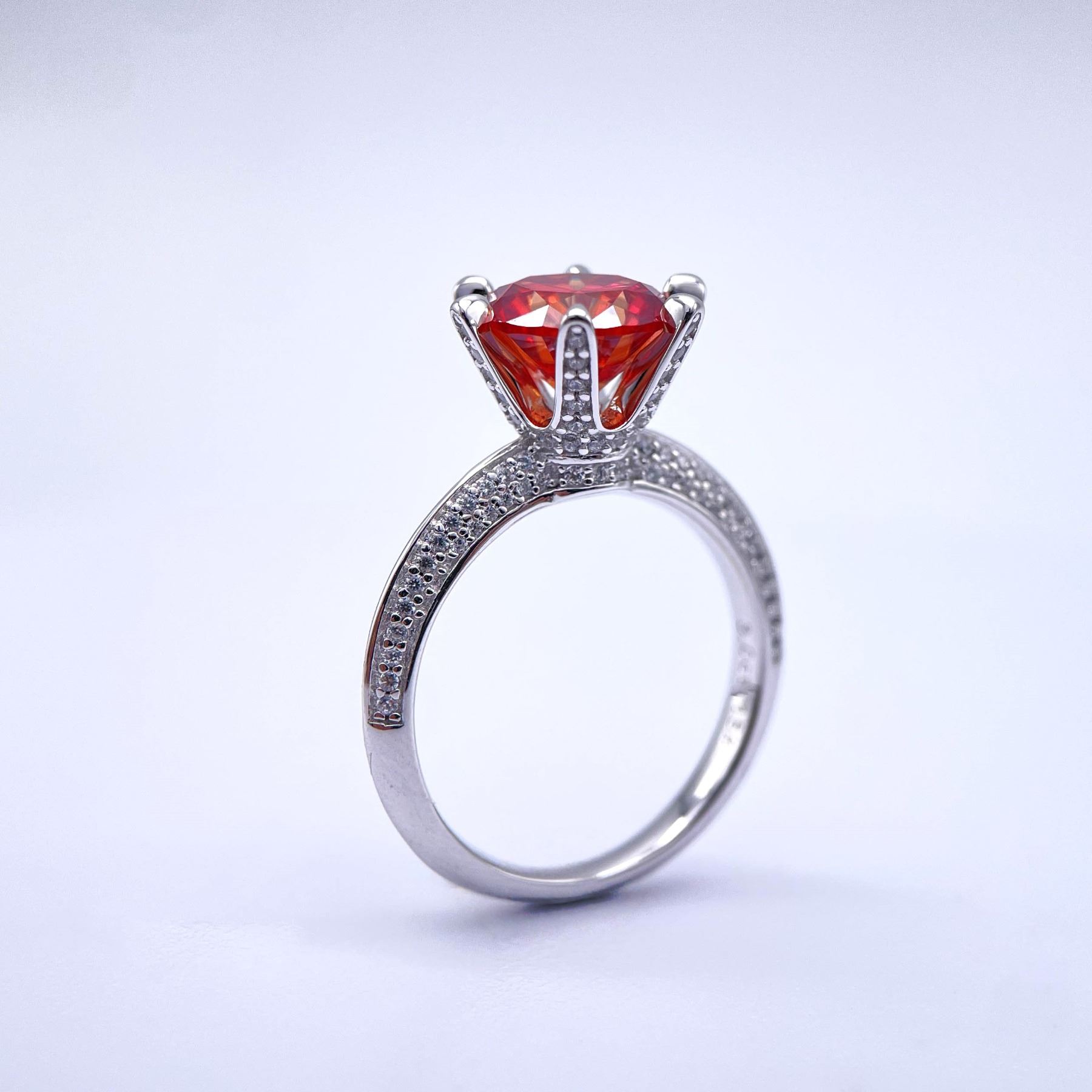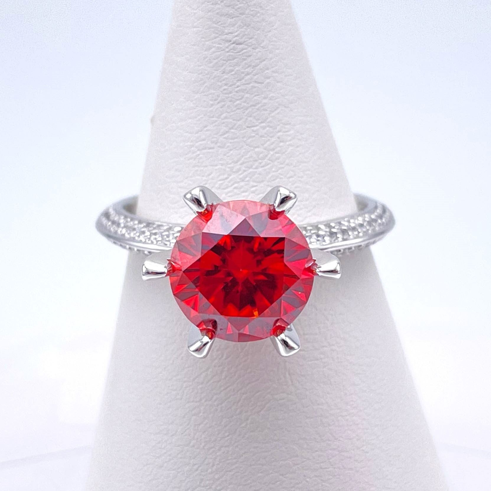Plated 14KT White Gold 3 Ct VVS1 Bright Red Fire Moissanite Ring