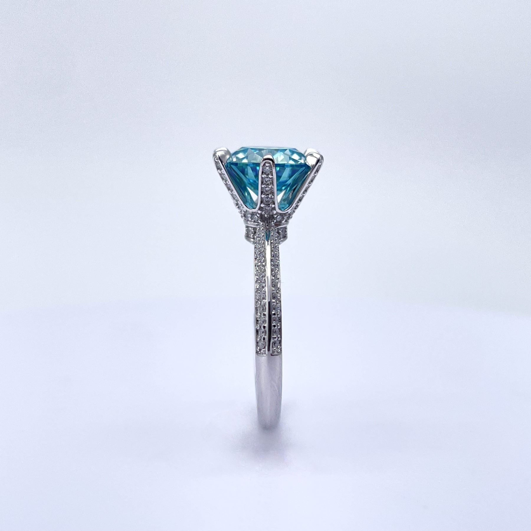 Plated 14KT White Gold 3 Ct VVs1 Deep Swiss Blue Moissanite Ring