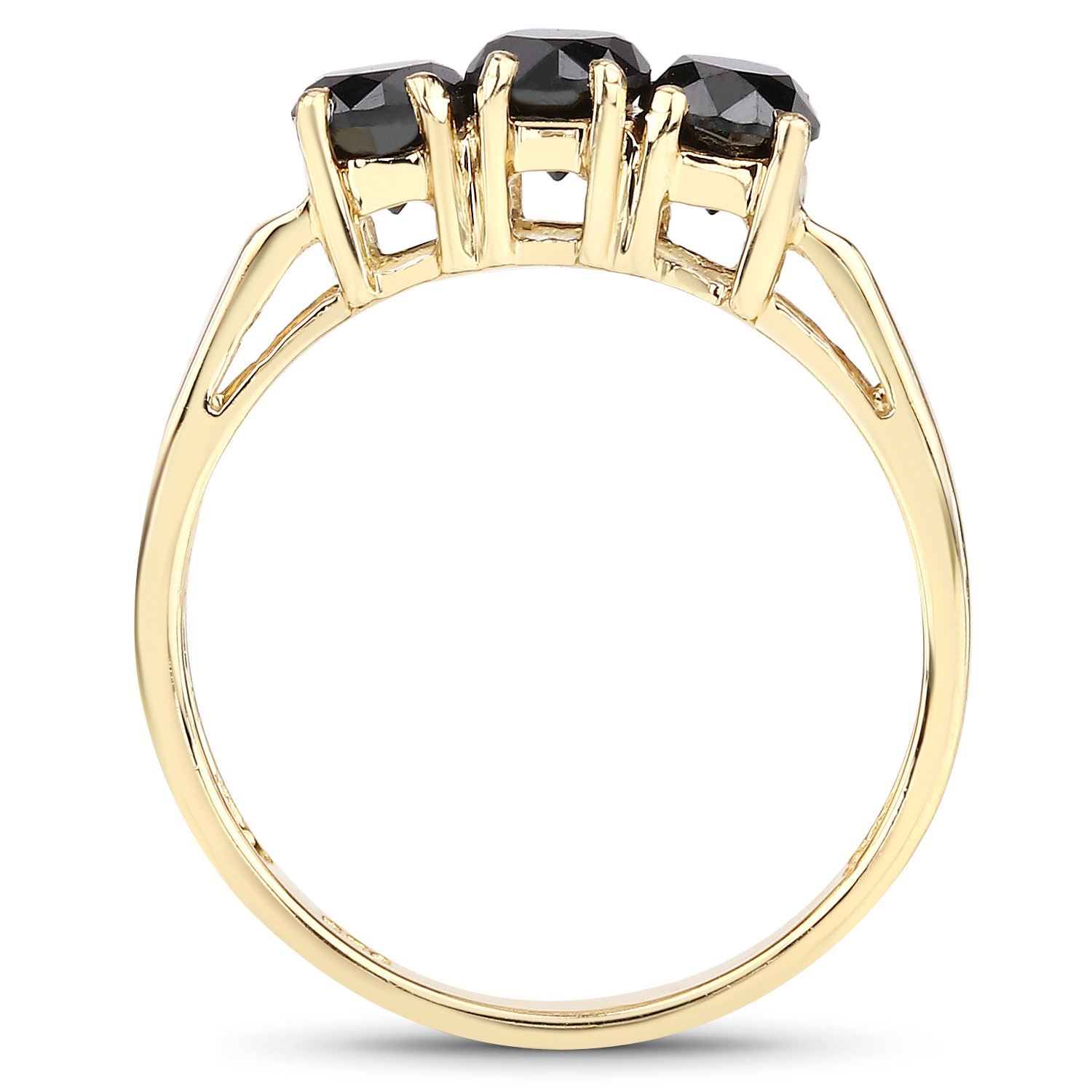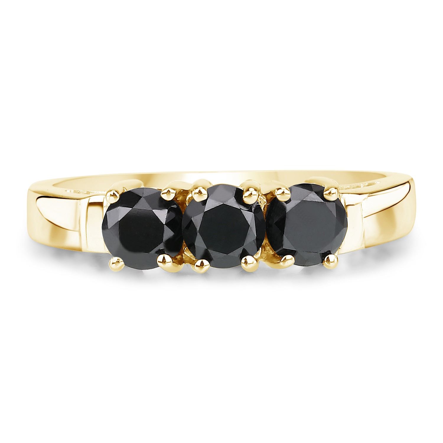 One Plated 14KT Yellow Gold 0.99ctw Black Diamond Ring. 3 Round Black Diamonds with a total weight of 0.99cts. Stones have not been treated. Total weight of this ring is 2.2 grams. Ring size 7.