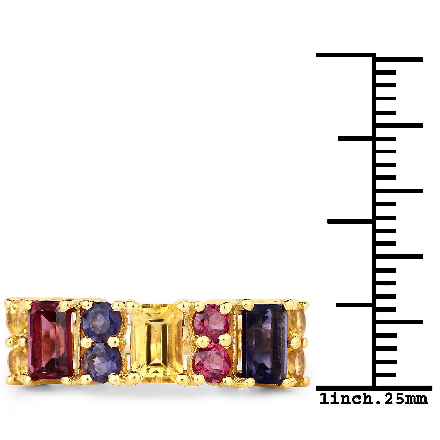 2.68 Carat Genuine Multi Stones.925 Sterling Silver Ring. Citrine Octagon/6x4mm - 1/0.55 ctw Prong Setting Natural Heat Treated N + Rhodolite Garnet Octagon/6x4mm - 1/0.75 ctw Natural Not Treated N + Iolite Octagon/6x4mm - 1/0.54 ctw Natural Not Treated N + Citrine Round/3.00mm - 4/0.40 ctw Natural Heat Treated N + Rhodolite Garnet Round/3.00mm - 2/0.26 ctw Natural Not Treated N + Iolite Round/3.00mm - 2/0.18 ctw Natural Not Treated N. Total weight 3.69 grams. Ring size 7.