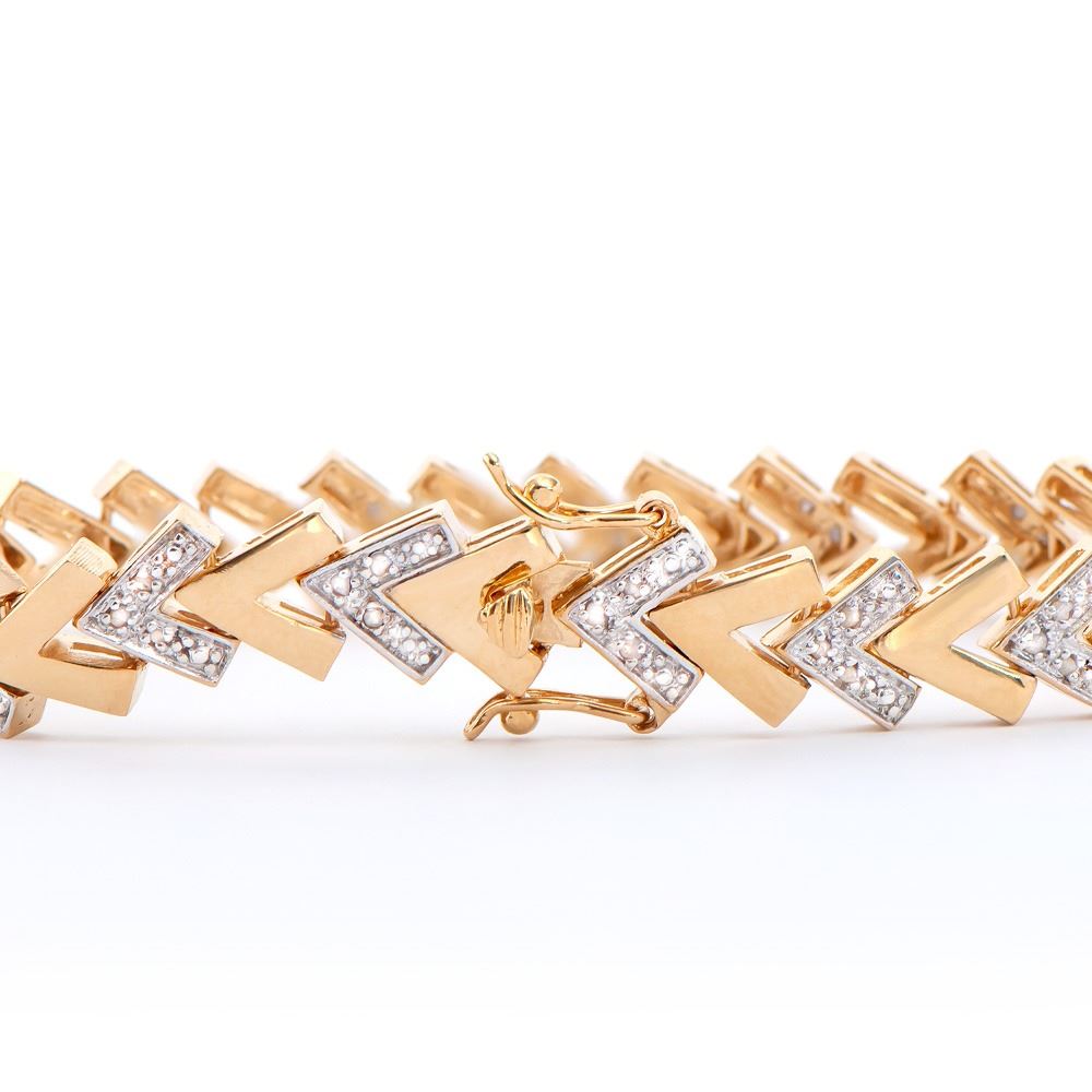 One Plated 18KT Yellow Gold 0.25ctw Diamond Bracelet. (33) round Diamonds measuring 1.1mm with a color of I-J and clarity of I-3. Total weight of bracelet is 19.05 grams. The length of this bracelet is 7 1/2 inches.