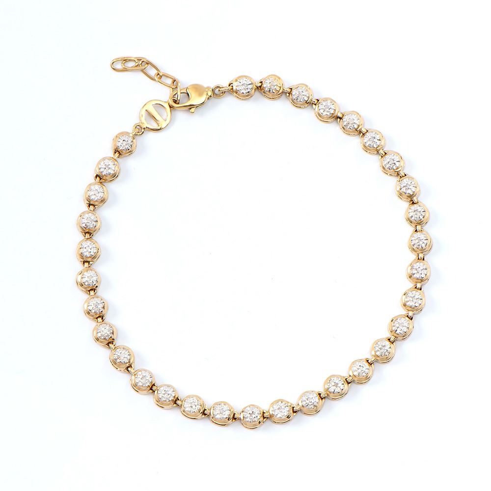 One Plated 18KT Yellow Gold 0.25ctw Diamond Bracelet. (32) Diamonds with a total weight of 0.25cts with a color of I-J and clarity of I-3. Total weight of 7.85 grams of brass layered with 18K yellow gold. The length of this bracelet is 7 1/2 inches.