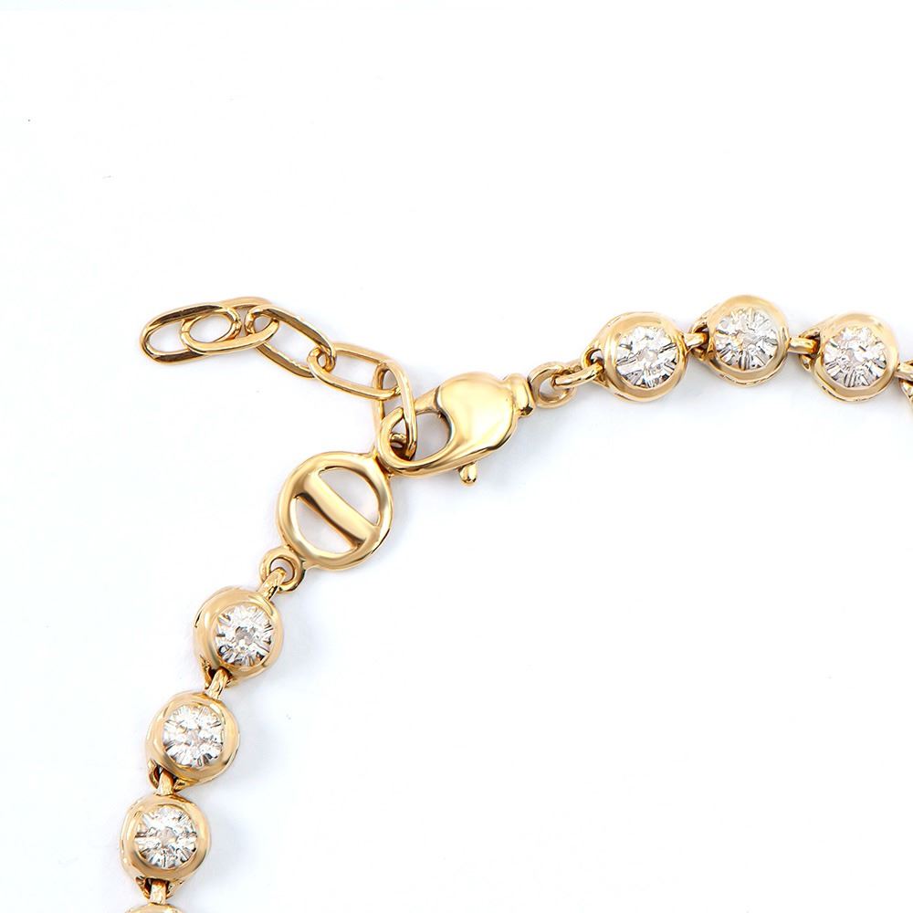 One Plated 18KT Yellow Gold 0.25ctw Diamond Bracelet. (32) Diamonds with a total weight of 0.25cts with a color of I-J and clarity of I-3. Total weight of 7.85 grams of brass layered with 18K yellow gold. The length of this bracelet is 7 1/2 inches.
