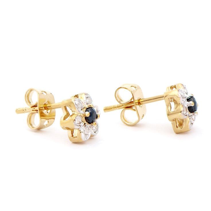 Plated 18KT Yellow Gold 0.32cts Sapphires and Diamond Earrings