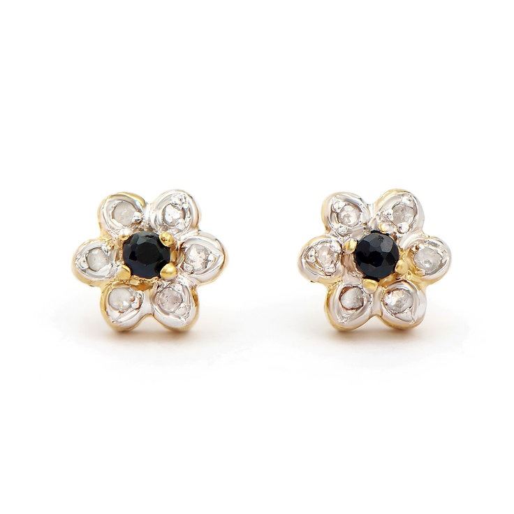 Plated 18KT Yellow Gold 0.32cts Sapphires and Diamond Earrings