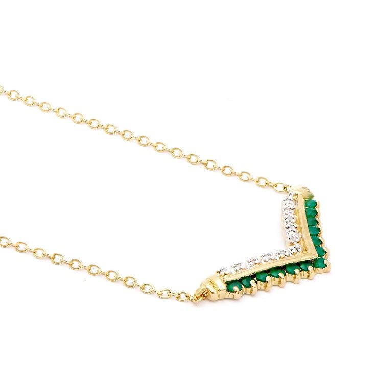 Plated 18KT Yellow Gold 0.59cts Green Agate and Diamond Necklace