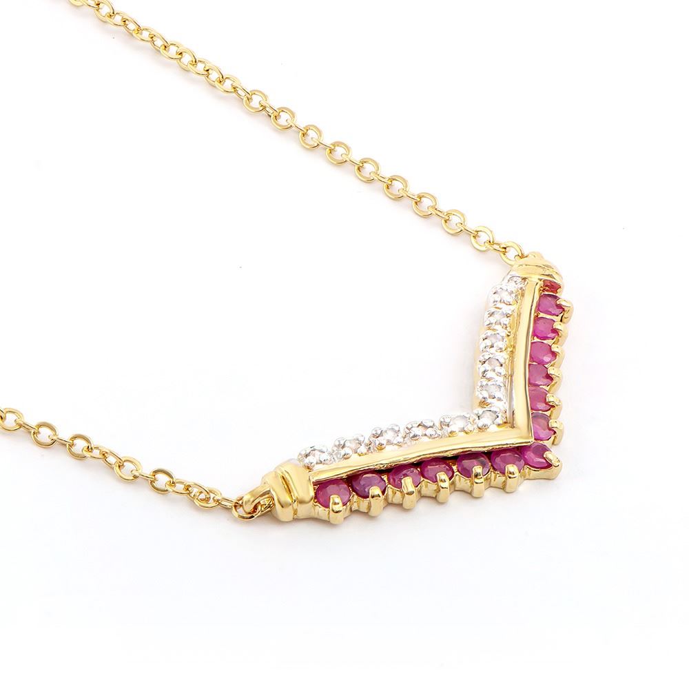 Plated 18KT Yellow Gold 0.61ctw Ruby and Diamond Pendant with Chain