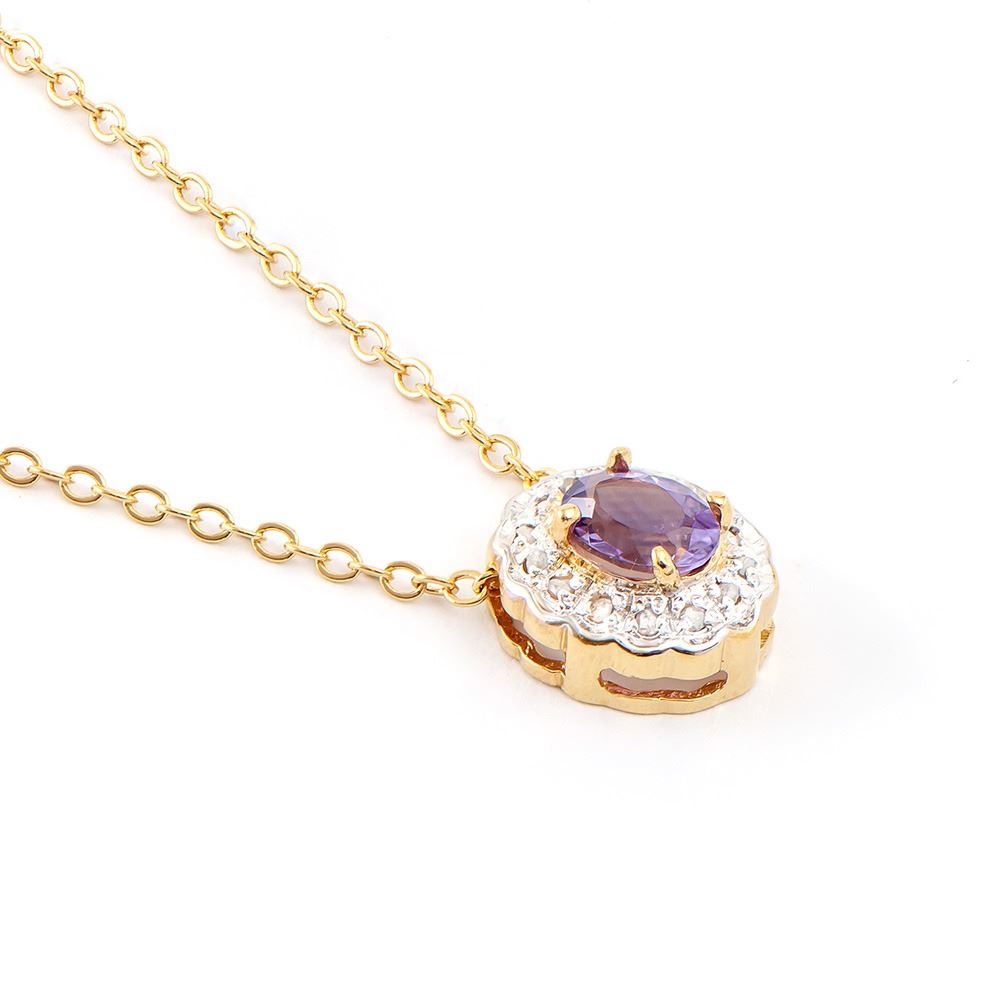 Plated 18KT Yellow Gold 0.65ct Amethyst and Diamond Pendant with Chain