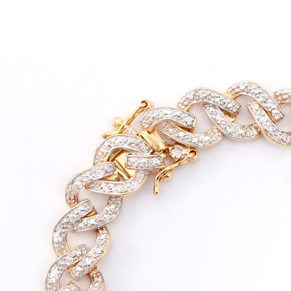 One Plated 18KT Yellow Gold 0.75ctw Diamond Bracelet. (96) Diamonds with a total weight of 0.09cts with a color of I-J and clarity of I-3. Total weight of 17.05 grams of brass layered with 18K yellow gold. The length of this bracelet is 7 1/2 inches.