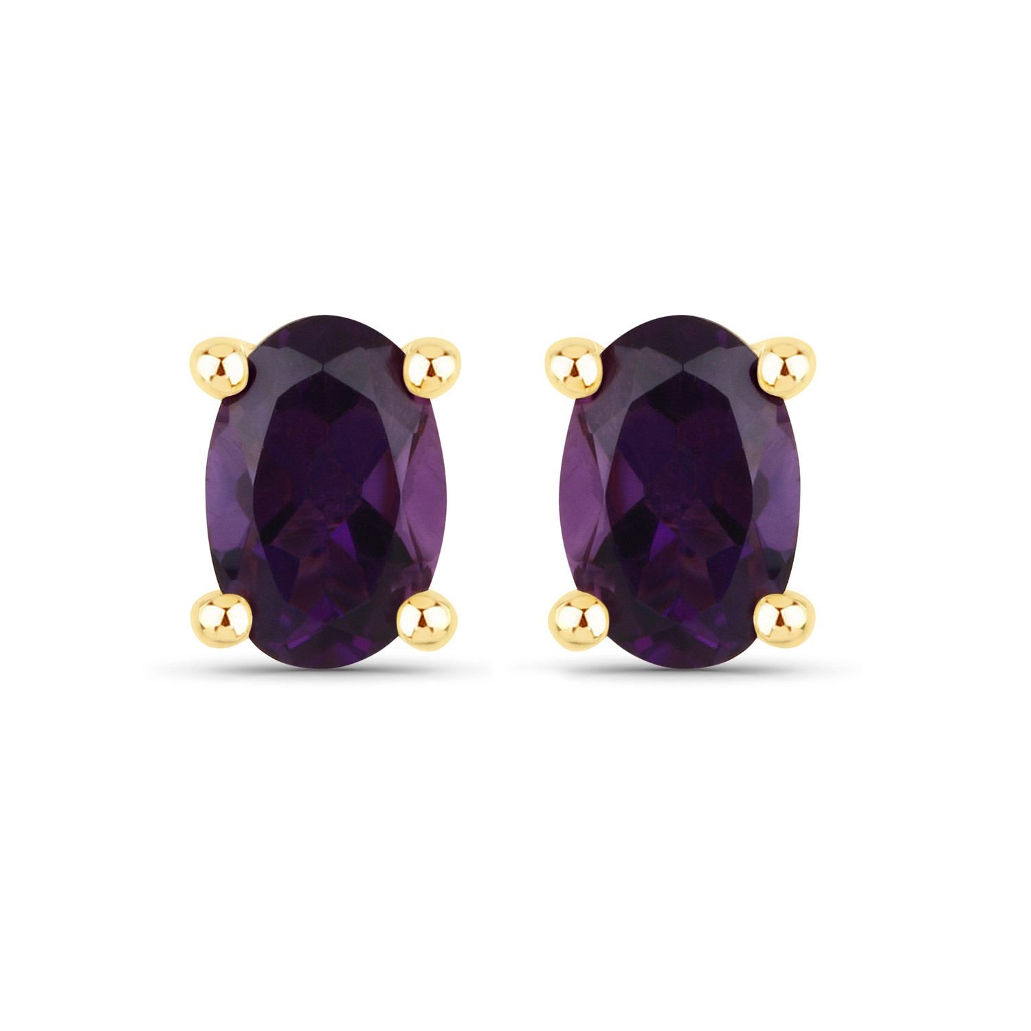 18K Yellow Gold Plated 0.84 Carat Genuine Amethyst.925 Sterling Silver Earrings. Amethyst Oval/6x4mm - 2/0.84 ctw Prong Setting Natural Not Treated E. Total weight 1.35 grams.