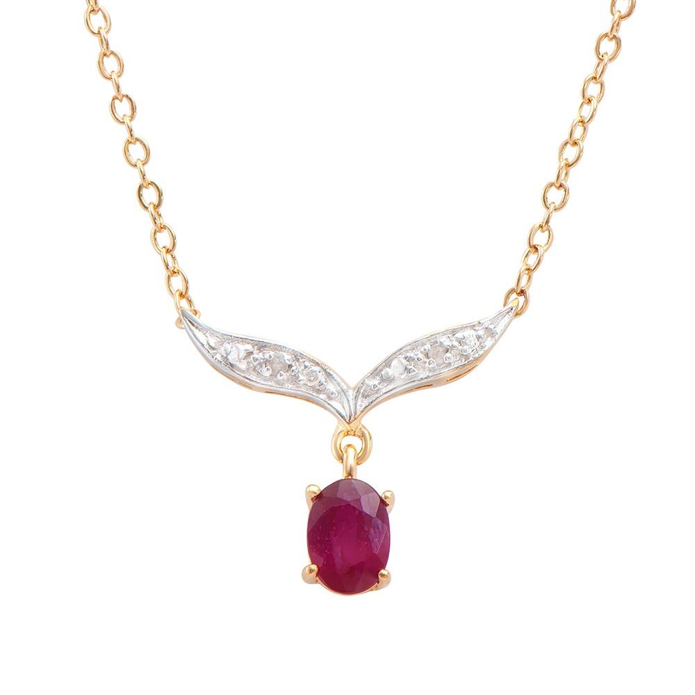 Plated 18KT Yellow Gold 1.00ct Ruby and Diamond Pendant with Chain