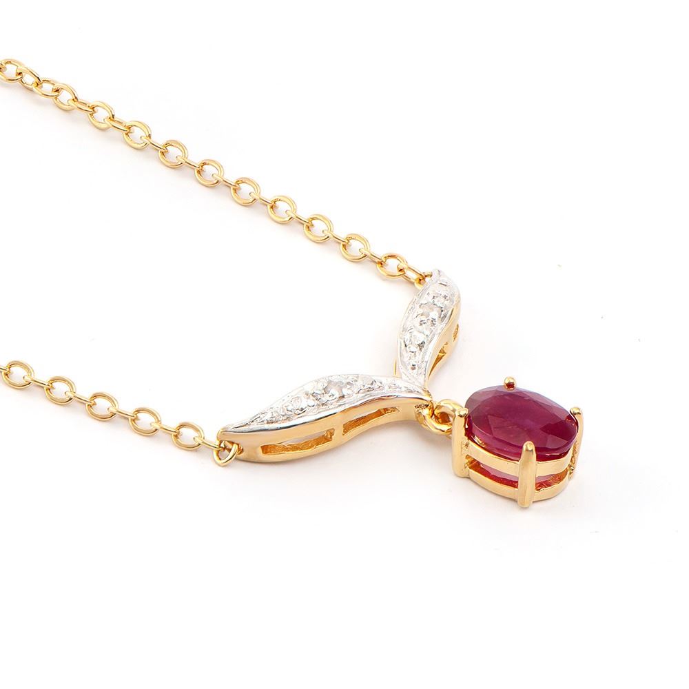 Plated 18KT Yellow Gold 1.00ct Ruby and Diamond Pendant with Chain