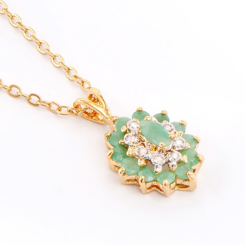 Plated 18KT Yellow Gold 1.00ctw Emerald and Diamond Pendant with Chain