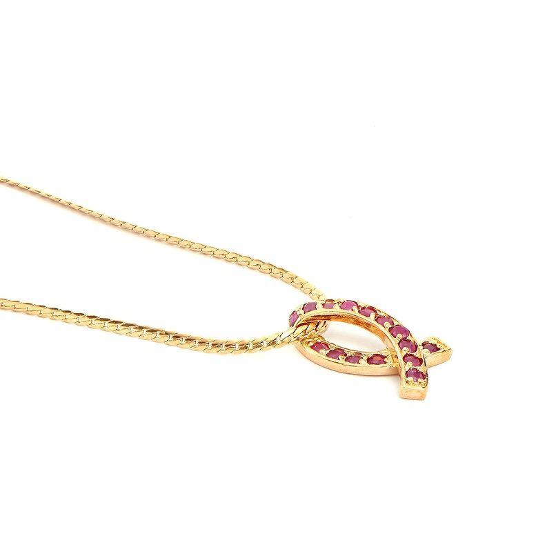 One Plated 18KT Yellow Gold 1.02ctw Ruby Pendant with Chain. (15) Rubies with a total of 1.02cts. Total weight of this pendant with chain is 5.08 grams. Total length of the chain is 16 inches.