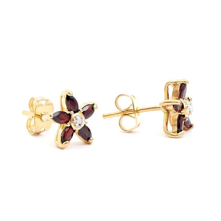 One pair of Plated 18KT Yellow Gold 1.03cts Garnet and Diamonds Earrings. (10) Brown Garnet stones with a total weight of 1.01cts. (2) diamonds with a total of 0.02cts with a color of H-I and clarity of I-3. Total weight of these earrings is 1.58 grams.
