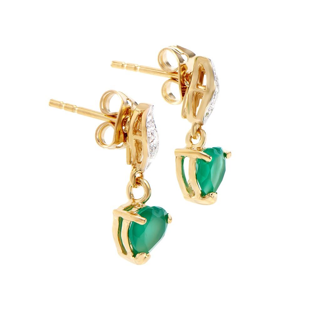 Plated 18KT Yellow Gold 1.10ctw Green Agate and Diamond Earrings