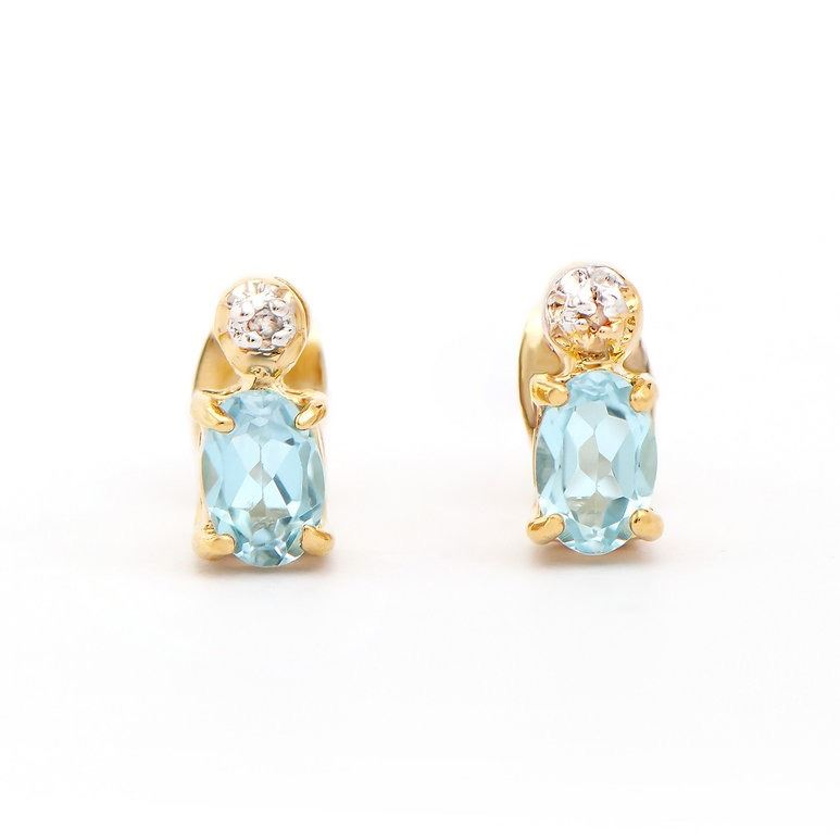 Plated 18KT Yellow Gold 1.12cts Blue Topaz and Diamond Earrings