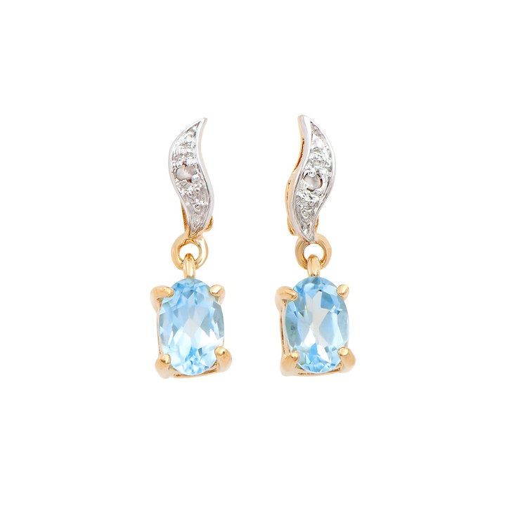 Plated 18KT Yellow Gold 1.12ctw Blue Topaz and Diamond Earrings