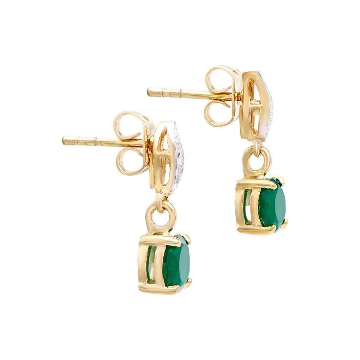Plated 18KT Yellow Gold 1.22cts Green Agate and Diamond Earrings