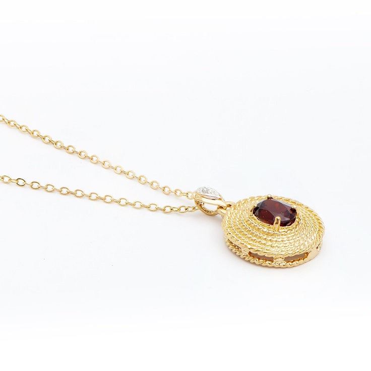 Plated 18KT Yellow Gold 1.26cts Garnet and Diamond Necklace