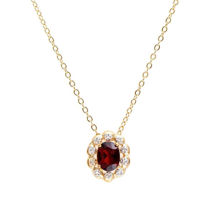 Plated 18KT Yellow Gold 1.28cts Garnet and Diamond Necklace