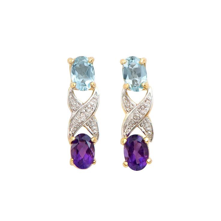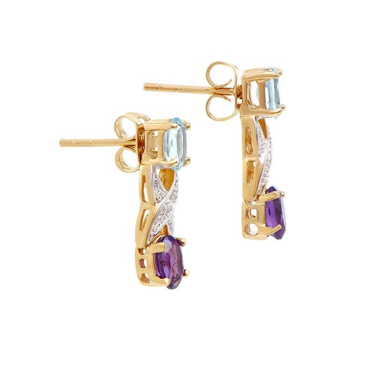Plated 18KT Yellow Gold 1.72cts Amethyst Blue Topaz and Diamond Earrings